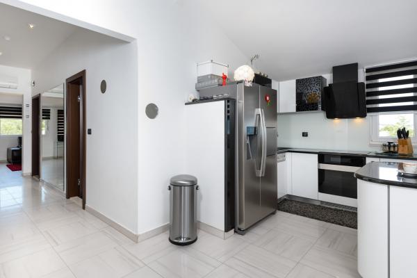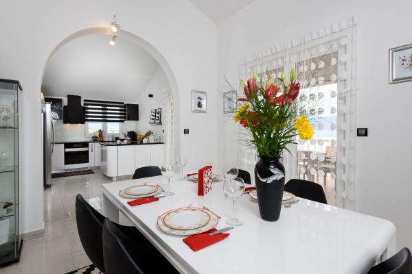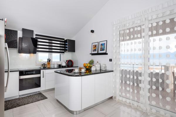 Opisi objekta, apartmana, okoline su tocni i realni. Isto tako su vlasnici u komunikaciji prije našeg dolaska sve detalje predstavili takve kako stvarno jesu. Kuća je potpuno renovirana, apartman vrlo čist, uredan i održavan, sva oprema je sasvim nova. Savremeno je opremljen, ima sve uređaje za konforni boravak, uključujući i vrlo dobru wi-fi vezu, ako posao nikako ne možete ostaviti doma... U neposrednoj okolini ima još nekoliko kuća, a restorani, kafici itd. počinju na otprilike 700 m (jos uvijek dosta blizu za ugodnu šetnju uz more), pa je ova kuća prava za miran odmor, primjerena i za obitelji s malom djecom (kao nasa). Velika i sasvim sigurna terasa se bez problema pretvori u igraliste za djecu svih uzrasta, ako treba. Ali prije svega izuzetni su vlasnici kuce: otvoreni, gostoljubivi i na usluzi, a isto tako prilagodljivi i nenametljivi, tako da se na odmoru možeš stvarno opustiti. Nama su upotpunili odmor. Iskreno preporučujem! Modern, newly equipped, spacious apartment in a completely renovated house, slightly off the beaten path. Excellent for a peaceful family holiday. You can definitely rely on the information given by owners - living on the upper floor - excellent couple, open, helpful and hospitable, but still never intrusive.