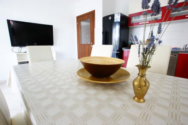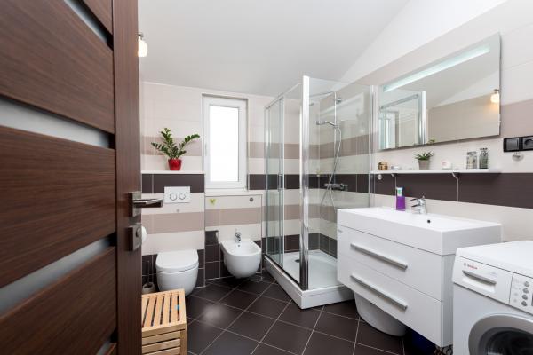 Prekrasan Apartman, vrlo čist i dobro opremljen suvremenom opremom (hladnjak, stroj za pranje rublja, stroj za pranje posuđa, TV, WiFi). Sobe su vrlo lijepo namještene i uredne. Kuhinja ima sve što vam je potrebno! More je doslovno 100 metara, ali ja preporučujem plažu, što je oko 2 km od kuće (platili smo parking 10 kn po autu). Apartman ima veliku, prostranu terasu, gdje postoje vrtni namještaj i ležaljke koje možete odvesti do plaže. Hotel je dobro čuva dvorište s parkirnim mjestima. Domaćini vrlo dobrodošlicu! Zahvaljujući njihovoj dobroti i otvorenosti našeg boravka pamtimo jako dobro! Apartman preporučuje za obitelji s djecom ili mladim aktivnih prijatelji-)