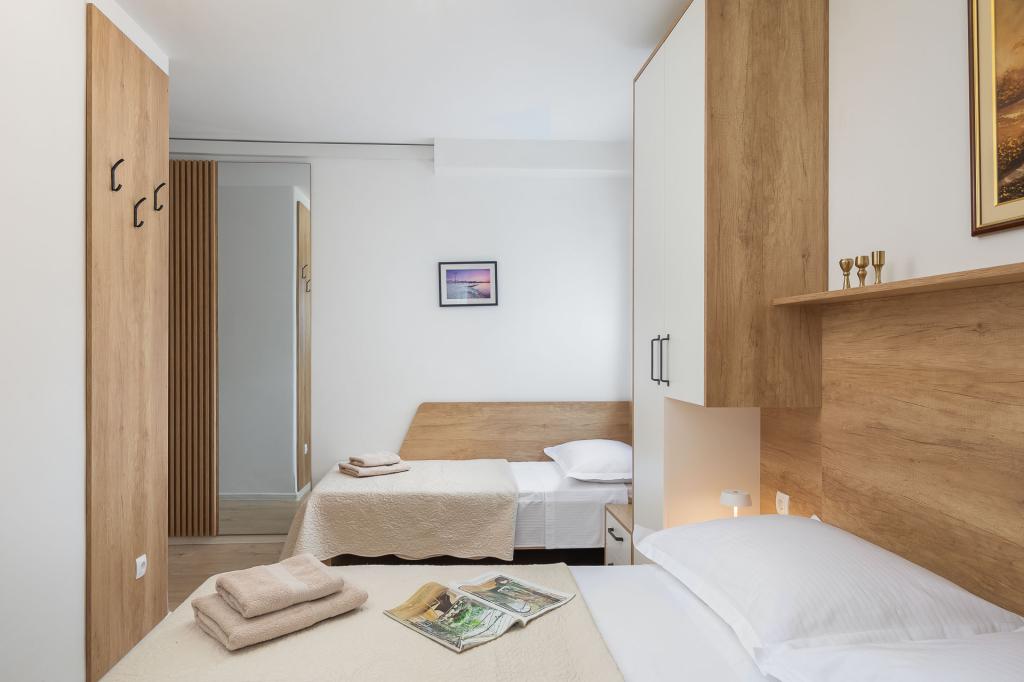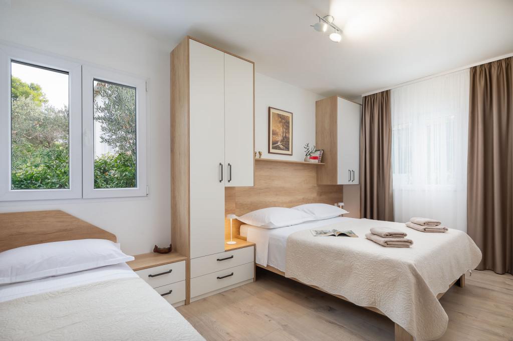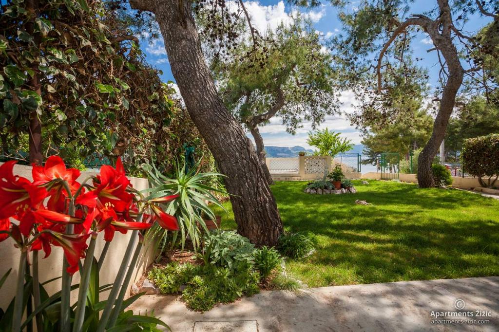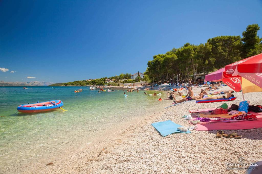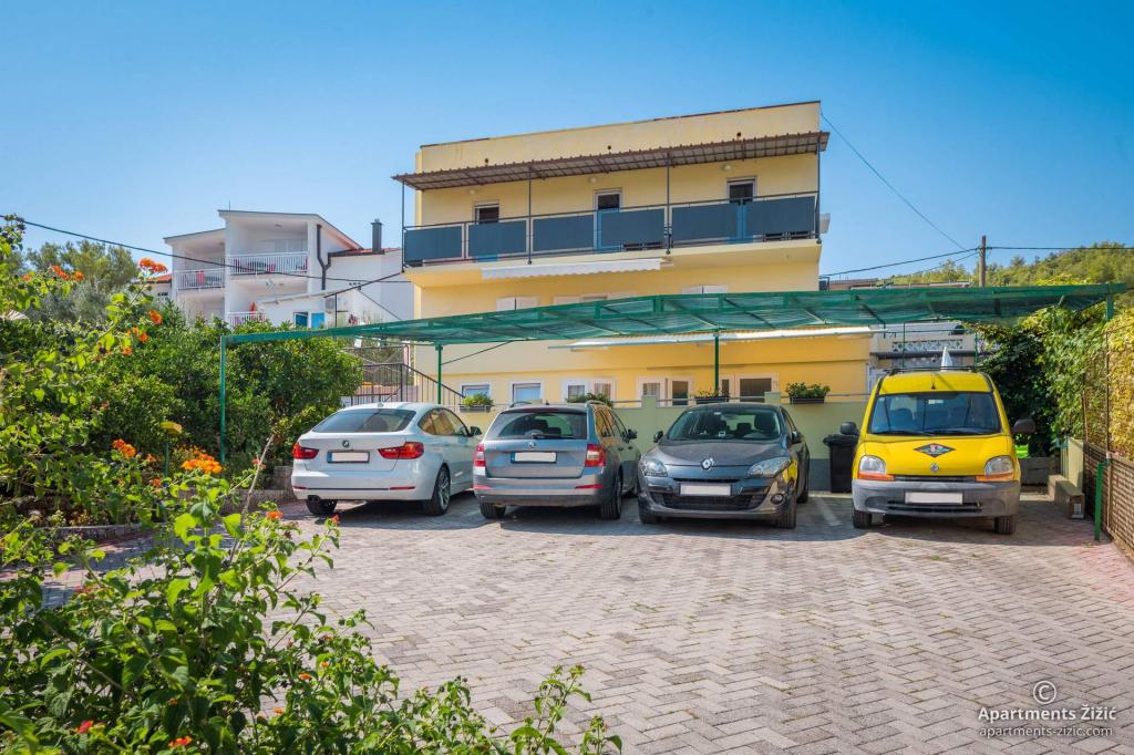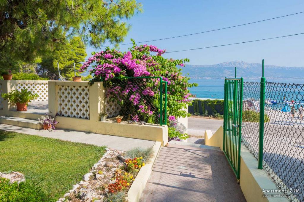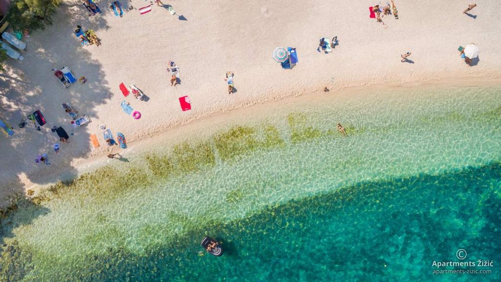 Apartmani Žižić se nalaze na otoku Čiovu u Hrvatskoj, udaljeni su 1 km od mjesta Slatine i 7 km od grada Trogira. Naši apartmani su idealan izbor za provesti miran i relaksirajuć odmor, okruženi prirodom i mediteranskim biljkama, udaljeni samo 20 metara od prekrasne plaže. Svaki apartman ima terasu, odvojene sobe, kuhinju sa pripadajućim aparatima, dnevnu sobu i kupaonicu. Također je za apartmane A4 i A5 osigurano jedno parkirno mjesto na natkrivenom i zatvorenom parkingu (ispred kuće), a za A6 apartman 2 parkirna mjesta. Na plaži ispred kuće se nalazi i ugostiteljski objekt sa caffe-barom i restoranom, uz mogućnost iznajmljivanja suncobrana i ležaljki, te korištenja tuša. Samo 80 m od kuće je supermarket i bankomat.