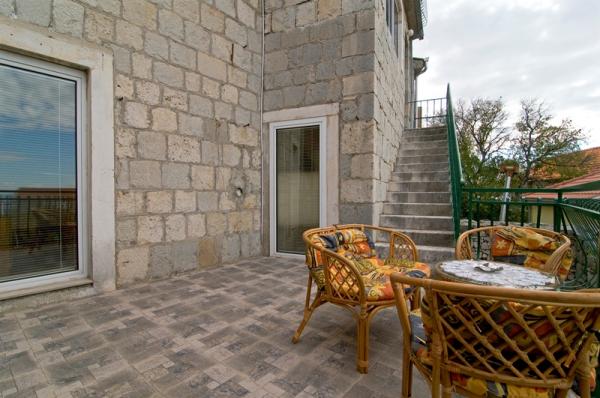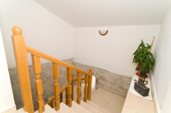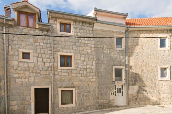 Kamena kuća u nizu površine 210 metara kvadratnih Nalazi se u centru mjesta mravince, udaljenom 4km od Splita, 7km od strogog centra (dioklecijanova palača). Kuća se sastoji od 4 etaže: - prizemlje: ljetna kuhinja i blagavaona - I kat: dvije spavaće sobe, veliko kupatilo i velika terasa - II kat: malo kupatilo, kuhinja i dnevni boravak - potkrovlje: velika spavaća soba, predsoblje, balkon Stepenice povezuju sve etaže u jednu cijelinu. Postoje dva ulaza u objekt, s istočne i zapadne strane.