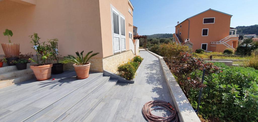 Apartman (desni u prizemlju) je bio dostatne veličine za četveročlanu obitelj, sve nas je dočekalo detaljno očišćeno i uređeno i pospremljeno. Jedino je kauč na razvlačenje trebalo sam namjestiti za djecu navečer da spavaju. Domaćin je iznimno pristojan i uljudan i nekoliko puta je spomenuo da mu se obratimo za bilo što ako nam još treba. Svaki dan bi uputio par riječi prema nama uvijek s iskrenim zanimanjem. Također svaki dan bi oko kuće uređivao okoliš koji zaista izgleda besprijekorno, pravi mali odmor za oči. Imao je razumijevanja i za moje jutarnje razgibavanje na verandi. Što se tiče opremljenosti, kuhinja ima sve potrebno za kuhanje, osim što je tava bila malo neprikladna za palačinke, ali smo se snašli. Jedno 200 m a i manje od kuće nalazi se mali dućan u kojem nema baš neki izbor, ali je velika pogodnost da uopće ima dućan u selu, ako dođete na vrijeme četvrtkom ili utorkom čini mi se možete naići i na tek dospjelo svježe voće i povrće. Ima i nešto pekarskih proizvoda koji su zapravo jako ukusni. Prodavač je neki smiješan lokalac, ugodna atmosfera je i u dućanu i okolo jer se popodne skupljaju lokalci i zajedno pijuckaju i zabavljaju uz lovačke priče. Lokalni kafić na 100 m od kuće je također zanimljiv i ugodan, iako su cijene kao da se nalazim na splitskoj rivi. Do Sakaruna ima 20 min hoda, što čak ni djeci nije predstavljalo neki problem. Sakarun je divan, iako više ne čiste nanose posidonije, ali jednom kad se uđe kroz travu do čistog pijeska zaista boja mora oduzima dah. Najljepša plaža na Dugom nam je ipak bila Veli Žal i tko želi uživati u njoj na najjače predlažem da ide već u 7 i bukira jednu od kućica od granja, inače će se peći na sunjari. Cijena smještaja je bila u skladu s očekivanjima i potpuno je opravdana.