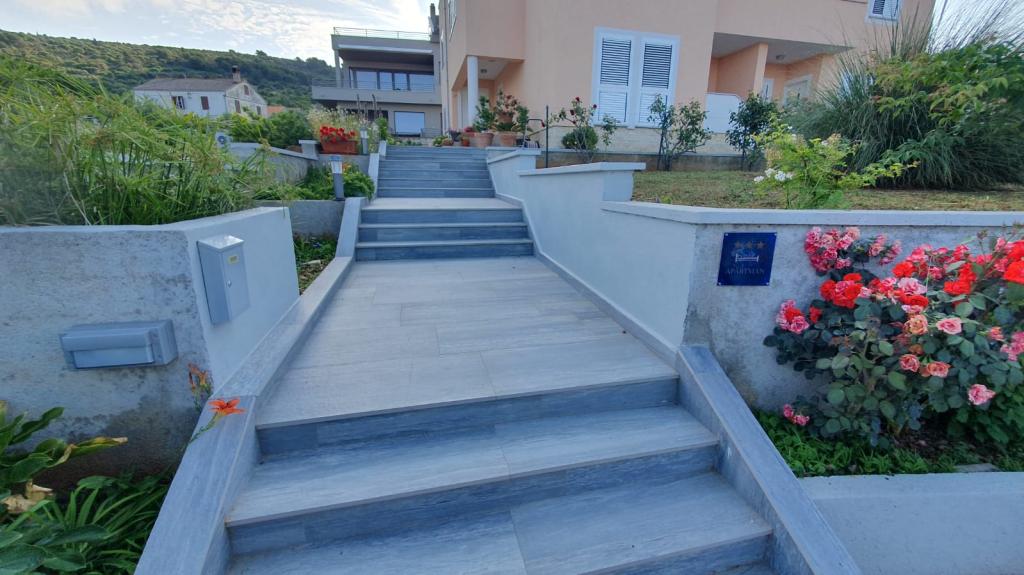 Potpuno novi, kompletno opremljeni apartmani u mirnom i slikovitom mjestu Soline na sjeverozapadnom dijelu Dugog Otoka. Apartmani se nalaze u prvom redu do mora i udaljeni su samo 30 metara od najbliže šljunčane plaže u samom mjestu, a 10 minuta hoda od jedne od najljepših pješčanih plaža na Jadranu, uvale Sakarun.