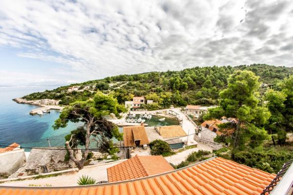 Raj na zemlji! Smještaj je spektakularan u svakom smislu! Ima dvije prostrane terase s fantastičnim pogledom! Sve je bilo perfektno čisto i savršeno opremljeno, uključujući i mašinu za sudove i mašinu za veš. Apartman je unutra prostran, s tri odvojene spavaće sobe i vrlo udobnim krevetima. Do vode/plaže je svega nekoliko koraka od kuće. Uvala je predivna, mirna, voda je čista, početkom septembra nije bilo gužve uopće, vrlo često sam bila sama na molu. Bilo mi je bitno da po potrebi mogu da nađem hladovinu, okolne kuće su je osiguravale. U uvali ne možete vidjeti nikakav kič, sve djeluje sasvim autentično, apsolutno ništa ne ukazuje na koncept masovnog turizma. Gostima bih savjetovala da imaju kola, jer uvala nema prodavnicu niti restoran, ali za mene je to bio "plus" . Domaćini prave i izvrsno vino, bili su ljubazni i nenametljivi, zahvaljujemo im se od sveg srca na savršeno mirnom i okrepljujućem odmoru! Sve preporuke za boravak u ovom apartmanu!
