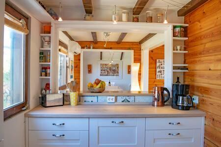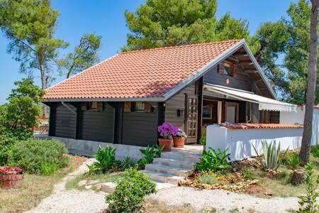 Kompletno i moderno opremljena drvena kuća na rubu Gornjeg Sela na otoku Šolti. U blizini se nalazi mali obiteljski restoran, dućan, uljara, vinarija...Brojne predivne i mirne uvale na južnoj strani otoka udaljene su 30 min pješke a dostupne su i automobilom ili biciklom. 2, 5 km od kuće je malo ribarsko mjesto Stomorska.