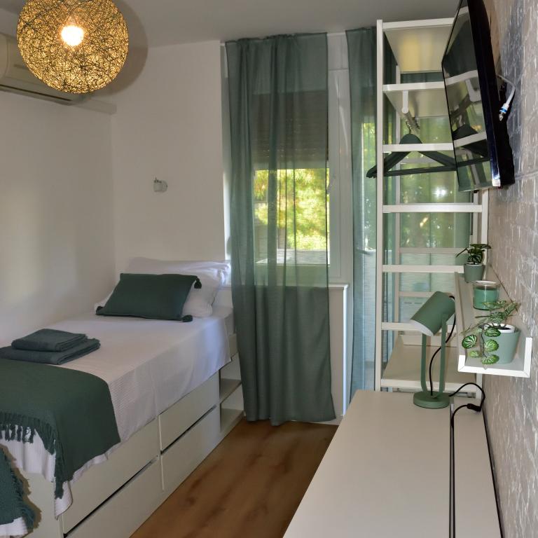 Smješten blizu glavnih atrakcija, naš apartman je samo 5 minuta hoda od povijesne jezgre i Dioklecijanove palače. Nudi dovoljno prostora i udobnosti s potpuno opremljenom kuhinjom, dvije spavaće sobe, ugodnim dnevnim boravkom, prostranim predvorjem, kupaonicom i dvije balkona s prekrasnim pogledom na zelenilo, stadion Poljud i zadivljujuće zalaske sunca nad morem. Prijevoz je vrlo jednostavan, bilo da vozite, uzimate taksi ili koristite javne autobuse, a besplatno javno parkiralište dostupno je ispred apartmana. Popularne plaže su lako dostupne, savršene za sunčanje i plivanje. Svaka soba je opremljena klimatizacijom, velikim TV-om i prostranim radnim stolom, pružajući mogućnost za opuštanje i produktivnost. Digitalni nomadi će cijeniti super-brzu WiFi vezu. Živopisna atmosfera stadiona Poljud je na samo nekoliko koraka, udaljena samo 100 metara. Osim toga, naš apartman je smješten blizu stadiona Park Mladeži, na samo 400 metara, gdje se održava poznati Ultra glazbeni festival.