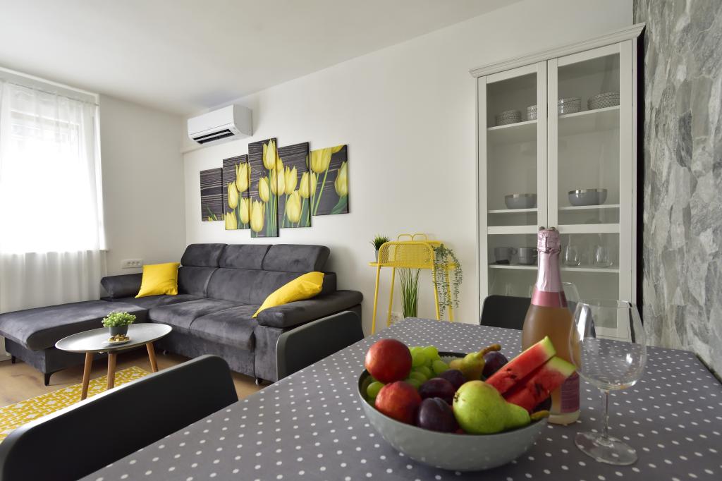 Gosti imaju piće dobrodošlice (boca vina), zdjelu svježeg voća, hladnu vodu i hrvatske slatkiše.