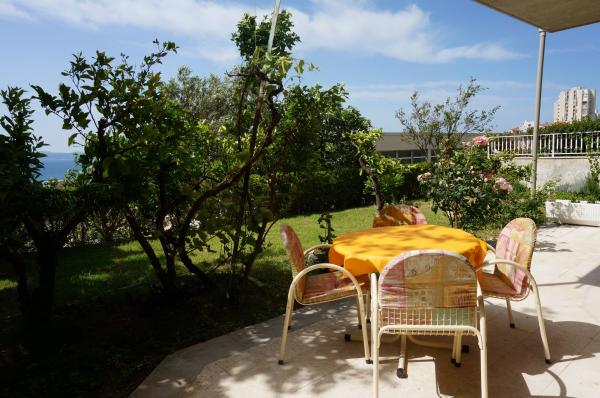 Moderan, potpuno nov apartman smješten je u neposrednoj blizini jedne od najljepših splitskih plaža – Žnjan. Svijetao i prostran apartman je novo namješten i potpuno opremljen sa svim što vam je potrebno za ugodan boravak. Apartmanu pripada i velika terasa s vrtom koji ima pogled na more. Sastoji se od: potpuno opremljene kuhinje, otvorenog dnevnog boravak/blagavaone, spavaće sobe s bračnim krevetom i krevetom na kat, dvije kupaonice – jedna s kadom i druga i s tuš kabinom, velike terase s vrtom i vanjskim prostorom za sjedenje. Sadržaji uključuju: klima uređaj, grijanje, LCD TV, potpuno opremljenu kuhinju s hladnjakom, štednjakom, pečnicom, posuđem i perilicom posuđa, stroj za pranje rublja, sušilo za kosu, glačalo