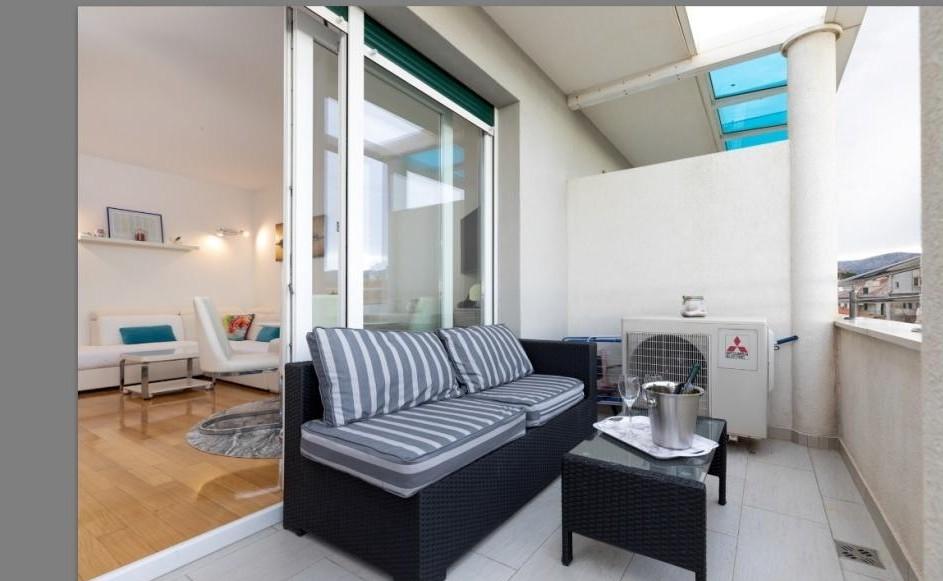 Ovaj prekrasan stan u centru Splita ima 70 m2, terasu , masažnu kadu u kupatilu , klimu u svakoj sobi. More je udaljeno 50 m.. Ovaj jedinstveni smještaj nalazi se u blizini svih zanimljivih točaka, što olakšava planiranje vašeg posjeta. Centar grada i stara Dioklecijanova palača udaljeni su 5 minuta hoda. Imamo privatnu garažu sa 2 parkirna mjesta i liftom možete od garaže do stana. Stan se nalazi na 3.katu nove zgrade.Supermarket -300m, Restorani - 100m, Caffe bar - 50m , Izleti brodom -500 m Ključevi od apartmana i garaže se nalaze u sefu za ključeve u prizemlju zgrade. Šifru od sefa će te dobiti mailom, nakon što izvršite rezervaciju . Imamo i napomenu : Ispred zgrade se gradi hotel . Završeni su grubi betonski radovi i moguća je povremena buka tokom dana.