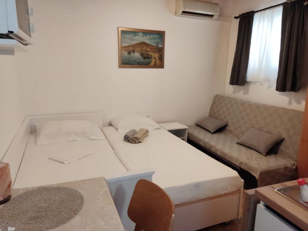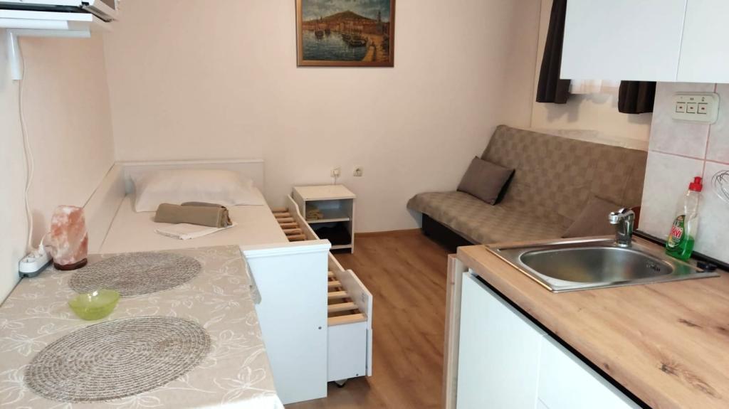 Apartman je u naravi mala prizemna kućica u blizini centra i plaze.Do plaze i do centra ima 5 -10 min hoda.Sve je novo i funkcionalno uređeno. Auto nije potrebno.