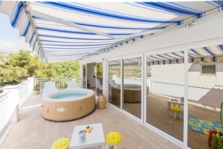 Kompletno i suvremeno opremljen apartman u bližoj okolici Splita, svega 20 minuta vožnje automobilom ili 30 minuta vožnje autobusom broj 28 do Splita. Mirno okružje i svježi zrak čine ga idealnim mjestom za odmor tijekom cijele godine. Smješten je na južnim padinama planine Mosor, u blizini izvora rijeke Žrnovnice. U smjeru jugoistoka cca 20 km nalazi se ušće rijeke Cetine te na udaljenosti od cca 45 km planina Biokovo. Upravo na pravcu ušća rijeka Žrnovnice i Cetine nalaze se najljepše šljunčane plaže za ljetni provod, a planine Mosor i Biokovo u proljetnim i jesenskim danima u raznim pravcima planinarima pružaju prekrasan pogled na otoke Brač, Hvar, Šoltu. Apartman se nalazi na prvom katu kuće i sastoji se od kuhinje, 3 spavaće sobe, dnevnog boravka, kupaonice, wc-a te prostrane terase s pogledom na Mosor i obližnju zvjezdarnicu. Sve prostorije su klimatizirane i opremljene svom potrebnom opremom kako bi Vaš odmor bio nesmetan.