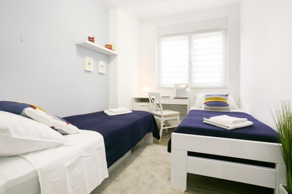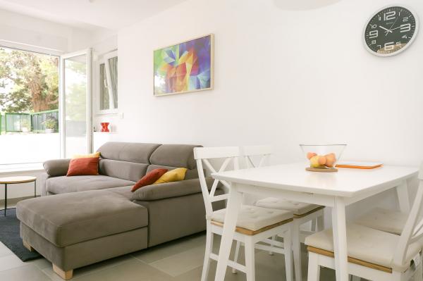 Moderni potpuno opremljeni dvosobni apartman, pun prirodnog svjetla, ima dnevni boravak koji se potpuno otvara na namještenu terasu od 20m2, smještenu u blizini glavnog ulaza u park šuma Marjan, ali i 10 minuta hoda od centra grada, najbliže plaže, stadiona i većine stvari koje bi vas mogle zanimati dok ste u Splitu. BESPLATNO PARKIRANJE na ulici. Stan se nalazi u stambenoj zgradi od 5 apartmana u prizemlju s odvojenim ulazom. Lijepo namješten i opremljen kako bi zadovoljio zahtjeve modernog življenja. Brzi Wi-Fi, Android Ambilight TV, kabelska TV, energetski učinkoviti klimatizacijski uređaji i kuhinjski aparati, pametni perilica rublja i mrežice protiv komaraca na svim prozorima su za vaše puno zadovoljstvo. Vjerojatno nećete trebati podno grijanje, ali je tamo ako se odlučite posjetiti nas zimi. Posebna pozornost je posvećena krevetima, spavanju i opuštanju. Terasa od 20m2 je vaša za uživanje u svježem povjetarcu koji dolazi iz šume dok pijuckate svoje omiljeno piće.
