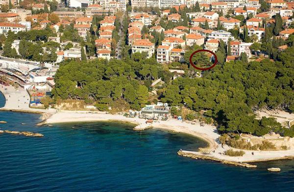 Apartman se sastoji od dvije spavaće sobe (velika i dječja) kuhinje, kupatila, predsoblja, velikog dnevnog boravka koji ima izlaz na veliku terasu sa pogledom na vrt i more, u neposrednoj blizini najpoznatije plaže Bačvice, također tu su i restorani, kafići, nekoliko plaža, šetnica, igraonice za djecu, tenis tereni, ljetno kino (preko puta vrta) centar grada sa Dioklecijanovom palačom. Blizina autobusnog i željezničkog kolodvora kao i trajektne luke. Također u krugu od 200m se nalaze trgovački centar, banke, bankomati, ljekarne, bolnica.