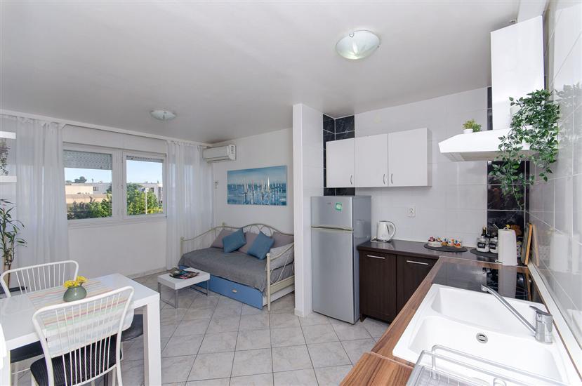 Opustite se s cijelom obitelji na ovom mirnom mjestu za boravak. Prvi apartman je moderan potpuno namješten dvosobni stan u blizini centra, sa sunčanim balkonom. Nalazi se u vrlo lijepom i središnjem dijelu Splita, samo 10-15 minuta hoda od Starog grada i Dioklecijanove palače. Idealno je mjesto za one koji kombiniraju rad na daljinu i odmor: super brz i pouzdan internet, pametna TV, radni prostor, klima uređaj, perilicu suđa, perilicu rublja, besplatan javni parking u blizini apartmana. Idealan je za 3 osobe. Drugi apartman se nalazi u blizini, 5 minuta hoda udaljen i sastoji se od jedne spavaće sobe, dnevnog boravka s kuhinjom i kupatila. Idealan je za dvije osobe, a treća može spavati na kauču u dnevnom boravku. Ima Wi-Fi, perilicu rublja, klima uređaj i besplatan javni parking oko zgrade.