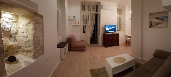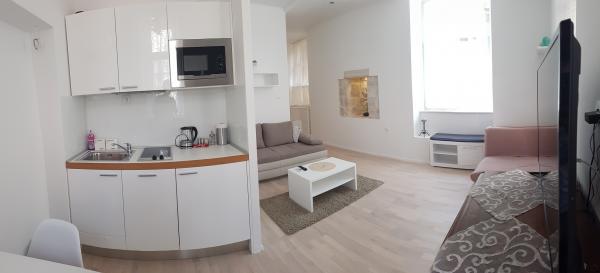 Turistička pristojba je uključena u cijenu.U blizini pješice cete naci: 1) 30 metara - vise od 10tak restorana domace i strane kuhinje. 2) Ulaz do (2 m) - Tommy Supermarket sa svim potrebnim stvarima za boravak. 3)50 metara - Ljekarna 4) Ulaz do (2m) - Rent - a - Car, Rent - a - bike, sailing i putovanja po obali. 5)100 metara - Jedina podzemna garaza u ovome dijelu grada. 6) 1km -Trajektna luka, bus i zeljeznicka postaja. 7) 100 m - Gradska praonica rublja.