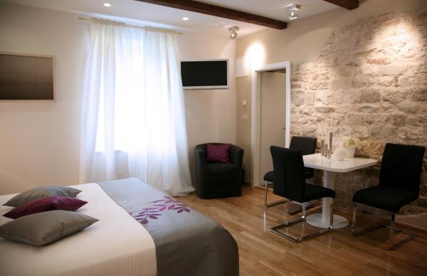 Apartmani Magnolia smješteni su u zaštićenoj zgradi iz 18. stoljeća, na samo 450 metara od Dioklecijanove palace koja je pod zaštitom UNESCO-a. Apartmani su suvremeni, novi i potpuno opremljeni sa besplatnim bežičnim pristupom internetu I osiguranim parkingom. Apartmani su uređeni dizajnerskim namještajem, drvenim parketnim podovima i originalnim starinskim kamenim zidnim elementima. Sadrže potpuno opremljenu čajnu kuhinju sa gratis kavom I čajevima, te vlastitu kupaonicu, LCD TV sa sateliskim programima, klima uređaj, sef… Osigurana svakodnevna izmjena ručnika, higijenskih potrepština, te pospremanje sobe. Gosti mogu istraživati živahno središte Splita sa brojnim restoranima, barovima i prodavaonicama ili se okupati na čuvenoj plaži Bačvice koja je udaljena svega 15 min hoda od apartmana. Na 15 min hoda od apartmana nalazi se autobusni i željeznički kolodvor, te trajektna luka sa svakodnevnim linijama do brojnih otoka. Zračna luka Split udaljena je 25 km
