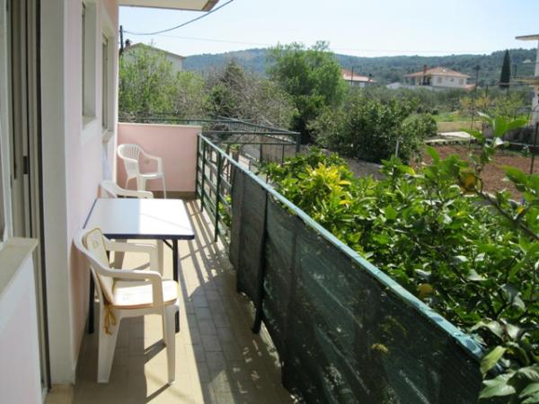 Apartman je okružen vrtom od naranče i limuna. Tri minute hoda ili 150m od bijelih šljunčanih plaža. Toplo, kristalno čisto more. Apartman je za 4-6 ili 8 osoba.Sastoji se od dvije dvokrevetne sobe, tuš i WC-om, kuhinje sa blagovaonicom i dvije terase.Stroj za pranje rublja, klima uređaj, hladnjak, pećnica, štednjak, mikrovalna pećnica, bojler, napa, kosa, posuđe i pribor u kuhinji su sastavni dio stana. Parking je besplatan u dvorištu objekta. Tu je i travnjak za dječju igru. Susjedstvo je mirno. Vi ste daleko od gradske gužve i buke. 80 m od trgovine. 150 m od restorana s ribljim specijalitetima, pizza saloni, kafići, igrališta za mali nogomet, košarku, dječje igralište.