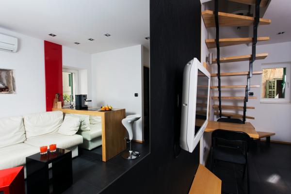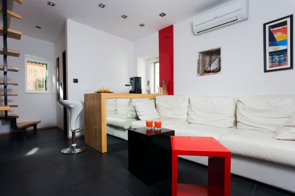 Apartmani Marinac Se nalaze u samom centru grada Splita u starom predjelu zvanom Radunica. Radunica je jedan od najpoznatijih dijelova staroga grada Splita, a tradiciju starine, domaće zabave i opuštenosti zadržala je do današnjeg dana! Ujedno se i svake godine zadnji tjedan šestoga mjeseca organiziraju Dani radunice kako bi se ljudi prisjetili nekih starih vrimena, vidili neka lica skoro zaboravljena, te se zabavili onako na starinski Dalmatinski način uz ribu, vino i naravno klapsku pismu. E pa u tom duhu su nastali i Apartmani Marinac. Nalaze se u 300 godina staroj kamenoj kući pokraj Duplančića dvora, obnovljenoj iz temelja na moderan način da u luksuzu zadrzi onaj stari duh koji odaje osjećaj mira i topline. Udaljeni su samo nekih 2-3 minute hoda od poznate Dioklecijanove palače što Vam pruža mogućnost svakoga dana iznova se buditi i obilaziti stare podrume, tunele i druge znamenitosti vrijedne svakog pogleda. Ujedno su smješteni na par minuta hoda do splitske trajektne luke.