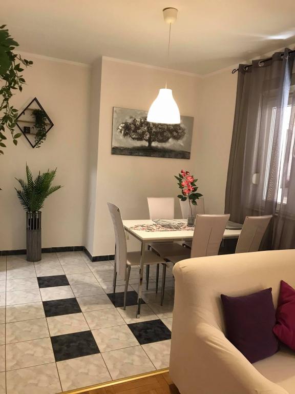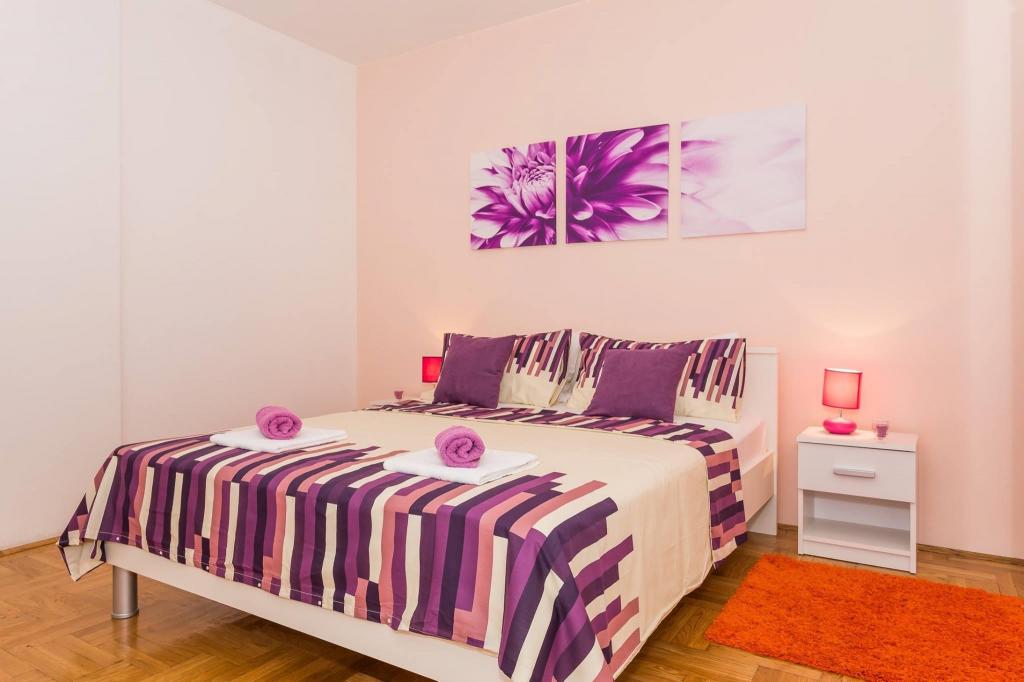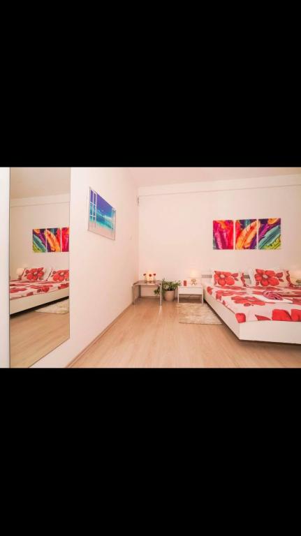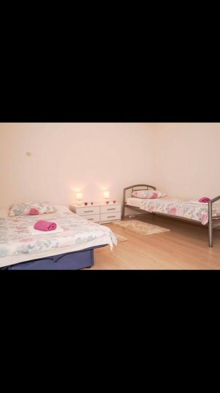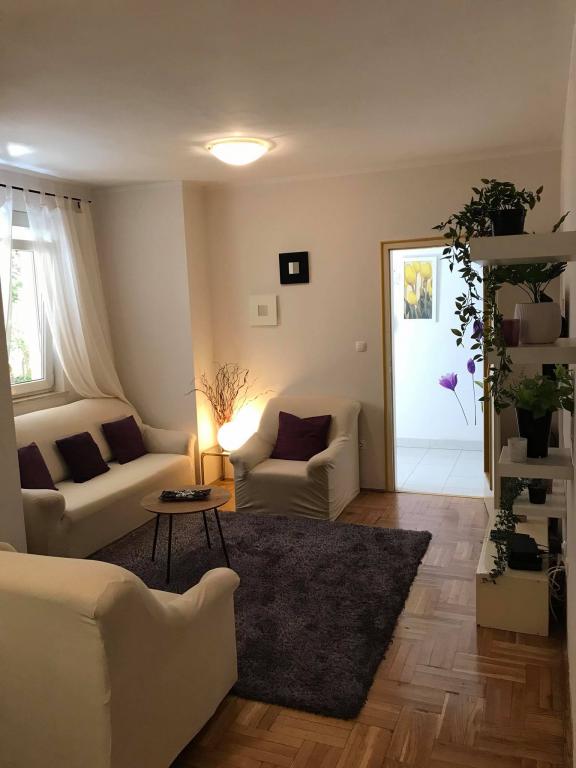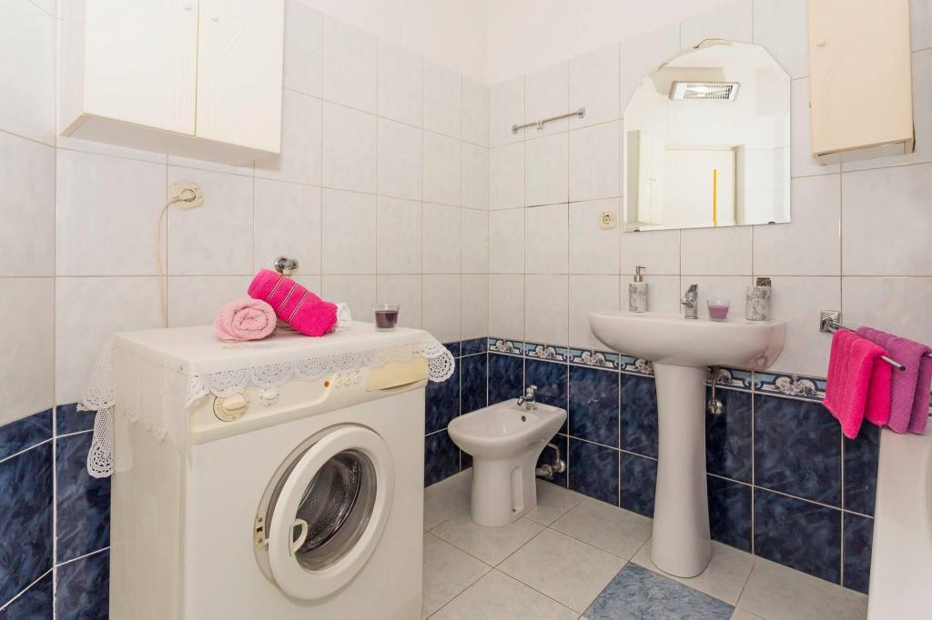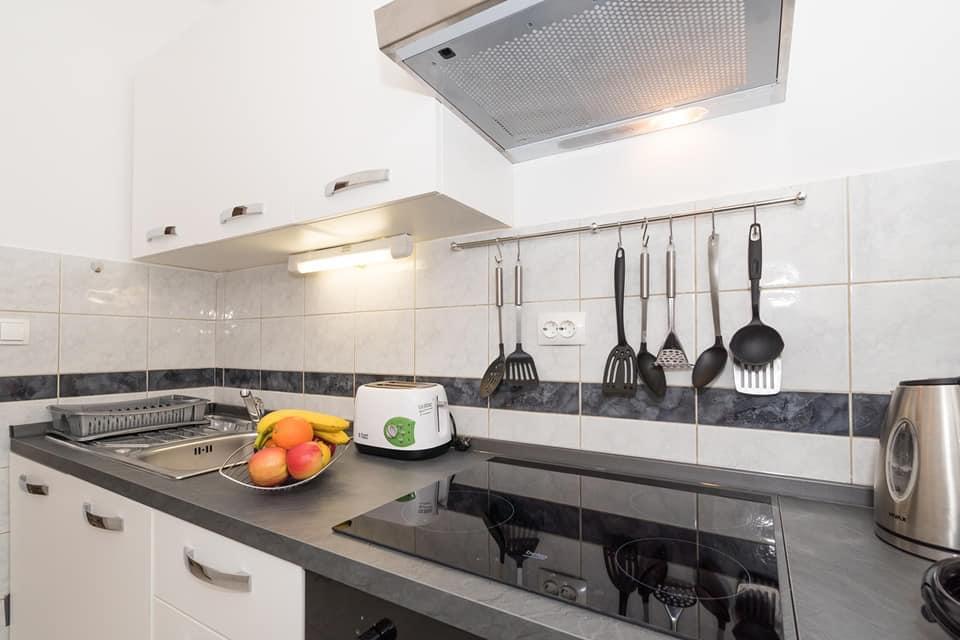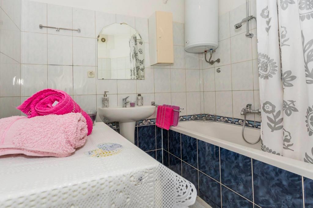 Apartman se nalazi u prvom redu do mora u novogradnji. Apartman sadrzava dvije velike sobe sa bracnim krevetima, dva wca, kuhinju, blagovaonu, dnevni boravak i terasu. Apartman je udaljen 200m od prve sljuncane plaze te 300m od plaze sa pijeskom. Udaljenost do prvog kafica i restorana je manje od 100m, caffe bar Renato, Tennis bar i Mythos, restoran Velo Misto i Barkarola. Do centra grada udaljenost je nekih 20ak minuta pjeske. Na udaljenosti od 100m nalaze se tenis tereni za iznajmljivanje.