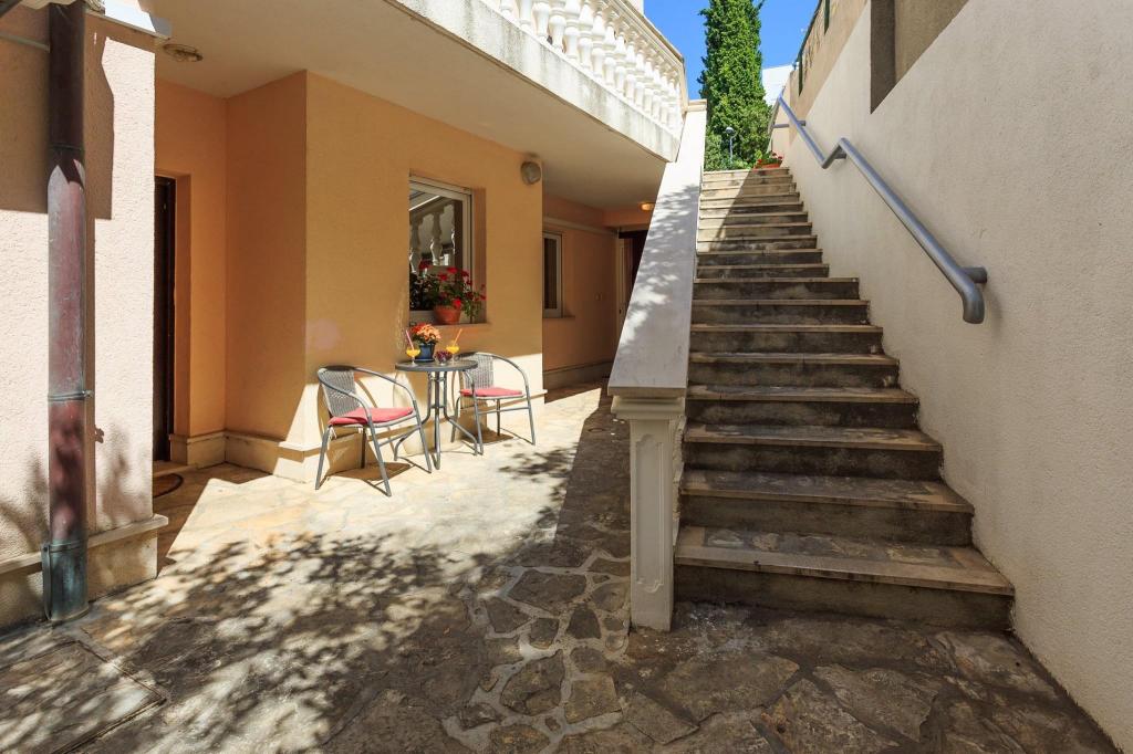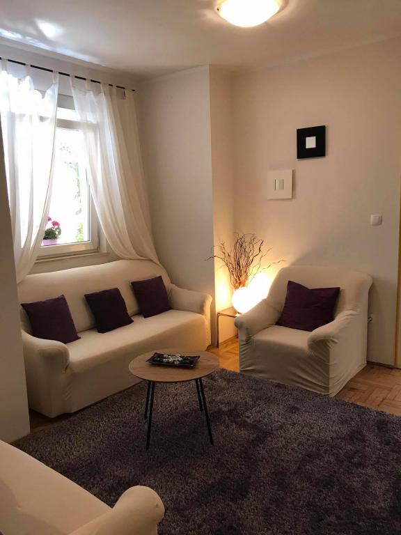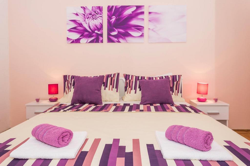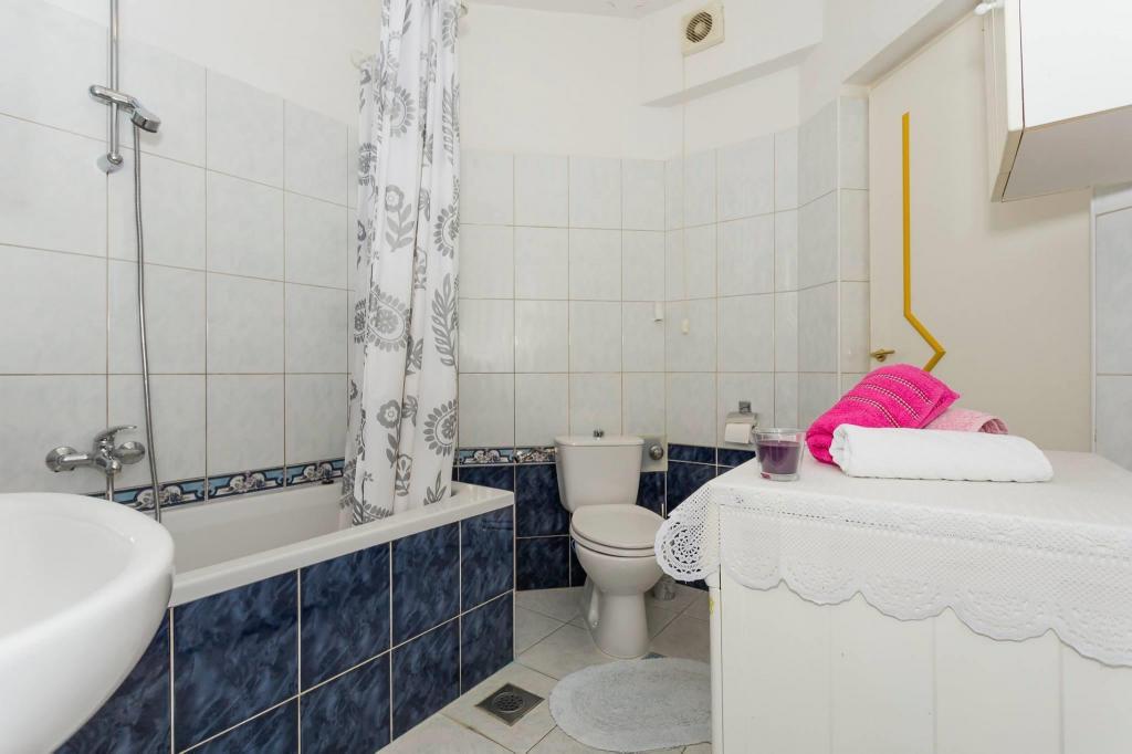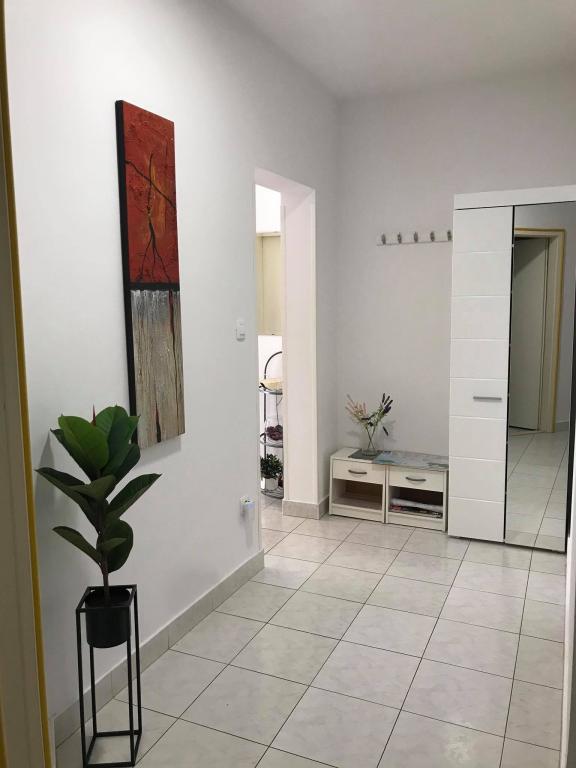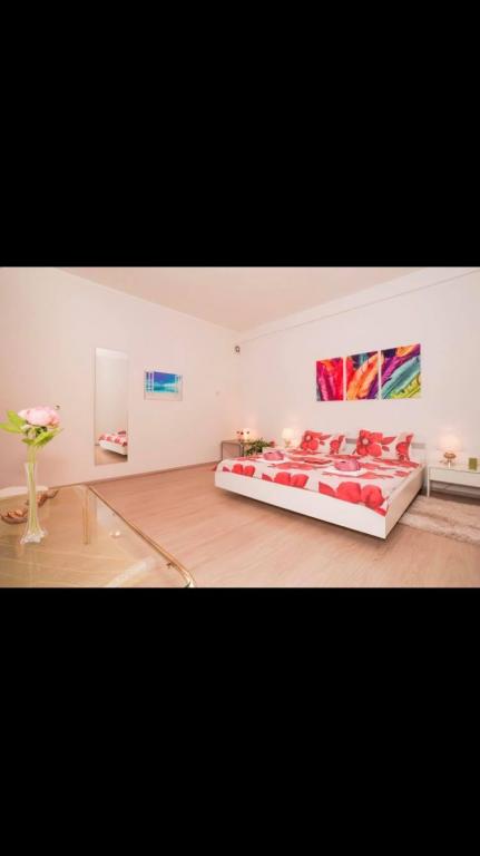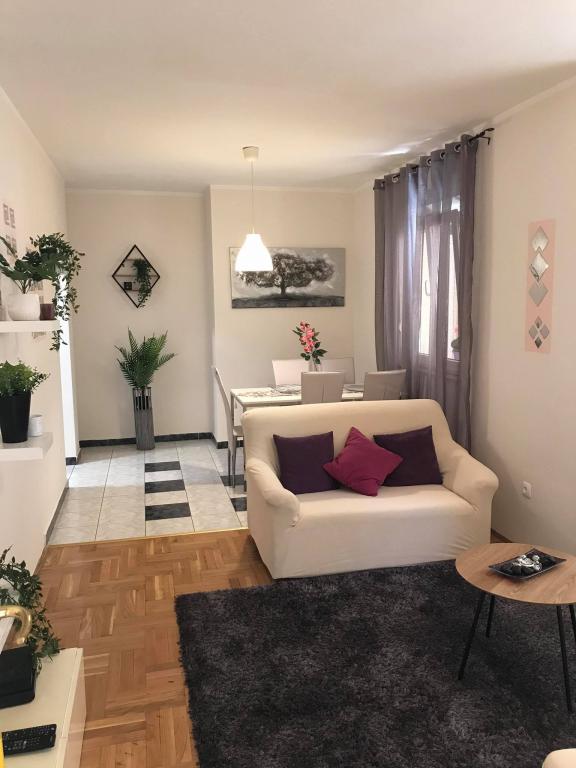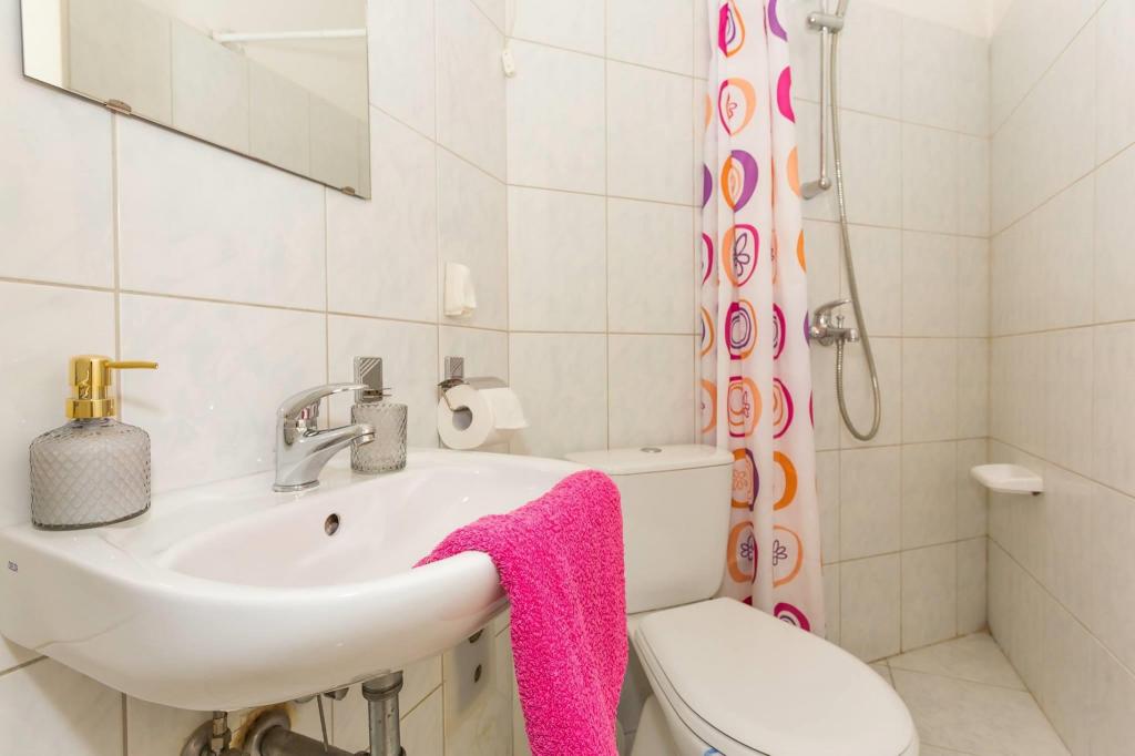 Apartman se nalazi u prvom redu do mora u novogradnji. Apartman sadrzava dvije velike sobe sa bracnim krevetima, dva wca, kuhinju, blagovaonu, dnevni boravak i terasu. Apartman je udaljen 200m od prve sljuncane plaze te 300m od plaze sa pijeskom. Udaljenost do prvog kafica i restorana je manje od 100m, caffe bar Renato, Tennis bar i Mythos, restoran Velo Misto i Barkarola. Do centra grada udaljenost je nekih 20ak minuta pjeske. Na udaljenosti od 100m nalaze se tenis tereni za iznajmljivanje.