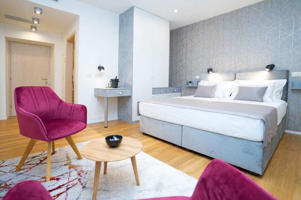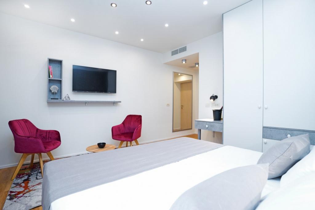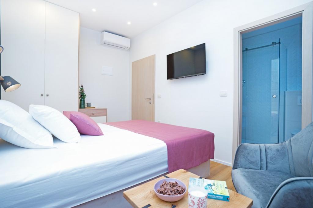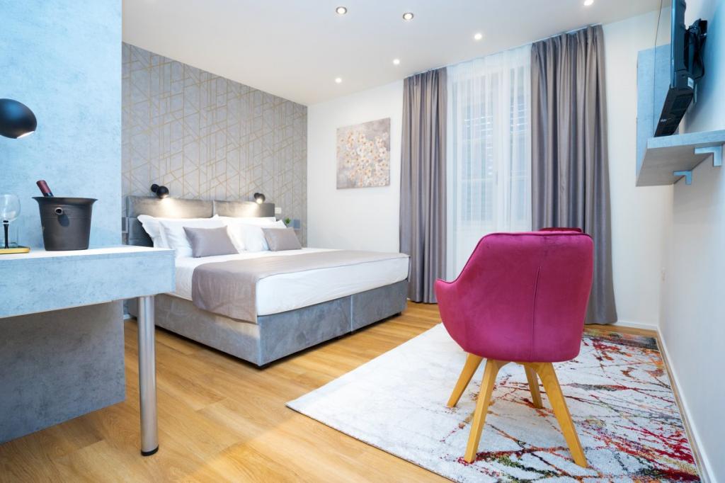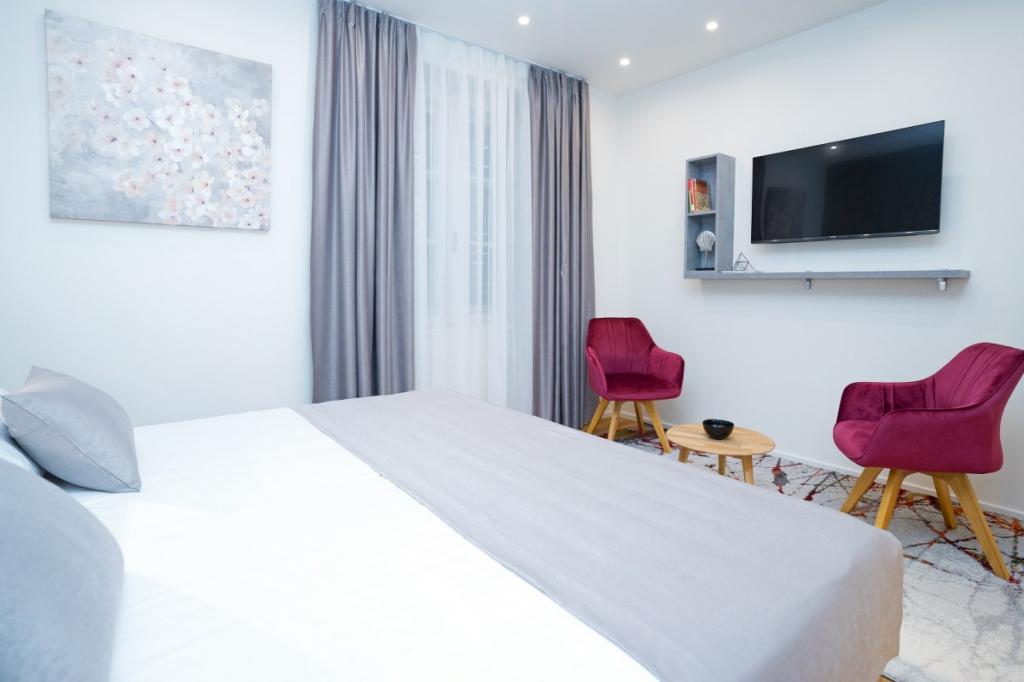 Lokacija je izvrsna, u mirnoj ulici a blizu Dioklecijanove palače, 2-3 minuta šetnjom. Soba je vrlo čista s udobnim king-size krevetom, dizajnerski uređena i s prekrasnim kupatilom, opremljena smart TV, brzim Wi-Fi, aparatom za espresso kavu, sefom za pohranu, minibarom, itd….. Kad opet dođem u Split odsjest ću ovdje
