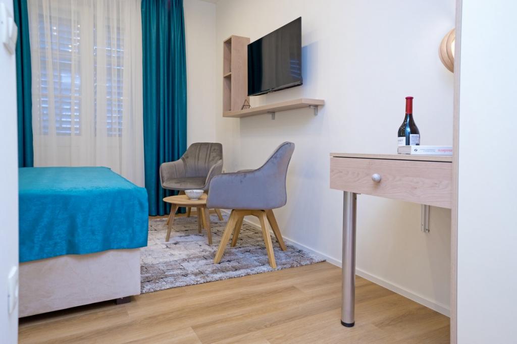 Fantastično. Soba je upravo onakva kao na slikama. Sve je bilo savršeno. Soba je nova, vrlo čista, lijepo dizajnerski uređena sa velikim king-size krevetom, smart TV, besplatnim dobrim WiFi, coffe-aparatom, mini hladnjakom, sveukupno soba visokog- hotelskog standarda, krasnim kupatilom sa kišnim i klasićnim tušem i svom kupatilskom opremom. Lokacija je također savršena, nekoliko minuta lagane šetnje do glavne šetnice Rive, svih znamenitosti starog grada, Dioklecijanove palaće, Peristila, Grgura Ninskog, mnogih restorana, barova i klubova. Za sve ove obilaske nije potreban nikakav prijevoz, jer je sve na pješačkoj udaljenosti. Zgrada je u mirnoj i tihoj ulici bez buke. Preporučam ovaj smještaj.