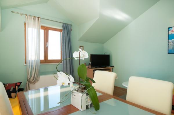 Kompletno i moderno uredjen apartman. Velika terasa sa prekrasnim pogledom na more. Prostrani lijepo uredjeni vrt sa voćem, cvijećem i travnjakom. Mogućnost usluge doručka - po dogovoru. Prijevoz do centra - po dogovoru. Prijevoz do plaže - po dogovoru.