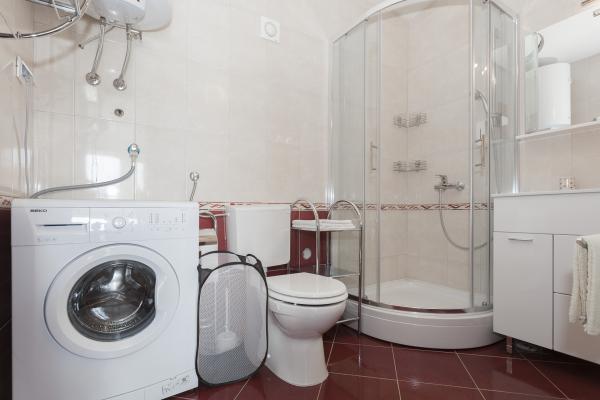 Apartman je bio čist i kao što se vidi na slikama unaprijed. Klima uređaj uključen. Posebno je vrijedno spomenuti brojne karakteristike apartmana na tanjurima, čašama, priborom za jelo i sl. Sve je to u dovoljnom broju na raspolaganju ono što trebate. Perilica posuđa i perilica rublja olakšavaju boravak. Dobrodošao je pivo, posebno proizvedeno od domaćina, a rakija je dobro pripremljena u hladnjaku. Na raspolaganju su bila dva bicikla, a dugačak 3,5 km do šetališta do Vodica čini se kraćim. Čak su mi ponudili skuter za upotrebu. Obližnja plaža bila je savršena za djecu jer je nakon pijeska u vodi imala otprilike jedan metar. Domaćin je bio vrlo prijateljski raspoložen. Njegova iskrenost i uslužnost zaokružila je njegovu pozornost. Bio je to vrlo lijep odmor koji biste željeli ponoviti u ovim sobama. , ,