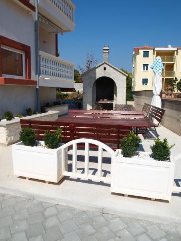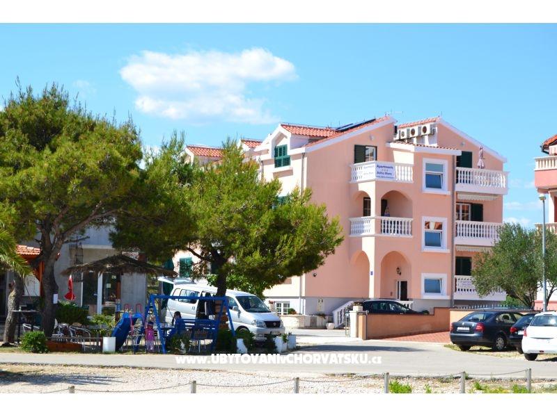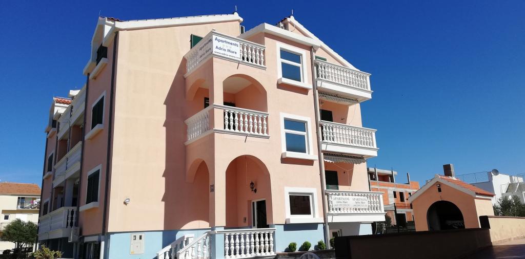 Apartmanska kuća ADRIA MARE se nalazi na jadranskoj obali ca.8 km sjeverno od Šibenika, oko 4 km od turističkog centra Vodice u mjestu Srima. Lokacija je mirna i apsolutno blizu mora (cca. 30 m), gdje je more plitko, djelomično sivi pijesak sa šljunkom i šljunčana plaža. U dvorištu kuće nalazi se veliki parking i roštilj. Uz kuću je mali kafić, oko 800 m je mala trgovina i restorani . Mali vlak vozi do centra grada koji je udaljen 4 km. Našim gostima nudimo udobne i dobro opremljene apartmane u jednom od naših 14 apartmana kao praktičnu i isplativu alternativu smještaja. Ovdje možete provesti ugodan odmor s djecom i prijateljima. 4x Studioapartman za 3 osobe sa 1x bračnim krevetom 180x200 cm i1 x kaučem 140x200 cm 4x Studioapartman za 2 osobe sa 1x bračnim krevetom 180x200 cm 4x Apartman (odvojena spavaća soba) za 4 osobe sa 1x bračnim krevetom i sa 2x kaučem 140x200 cm. 2x Novi Apartman (odvojena spavaća soba) za 4 osobe sa 1x bračnim krevetom i 1x kaučom 160x200 cm.