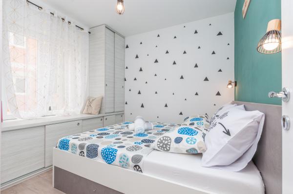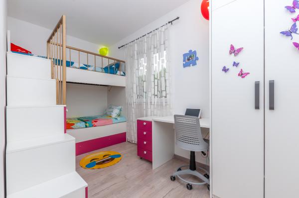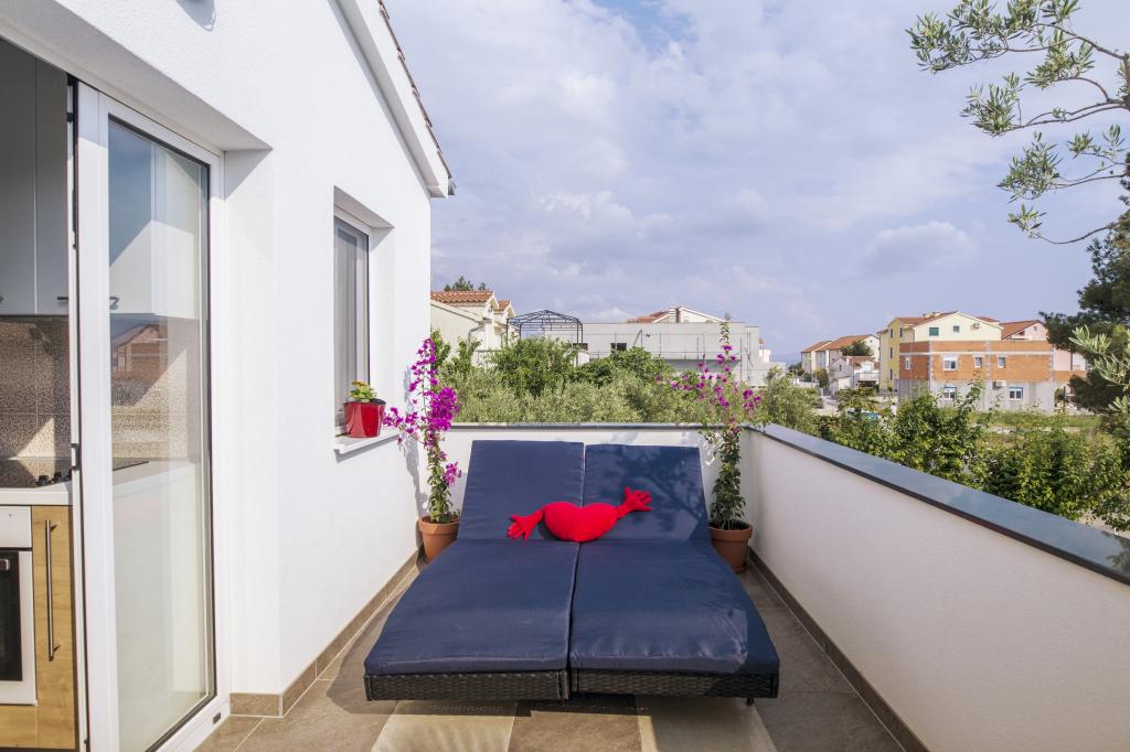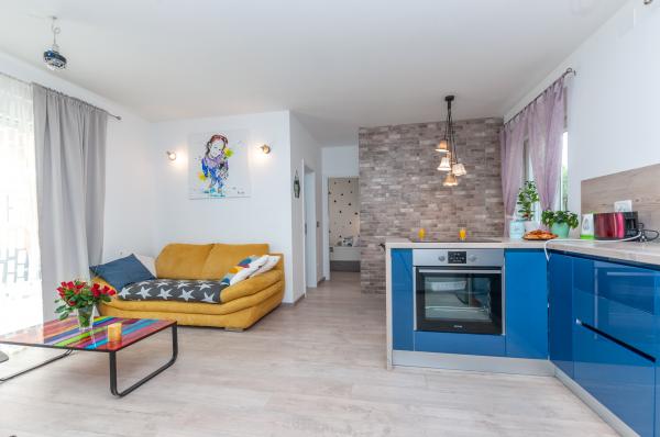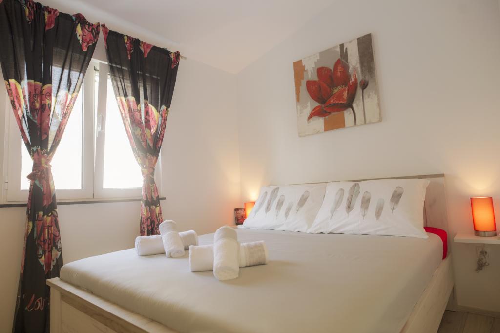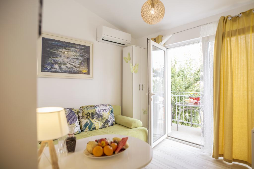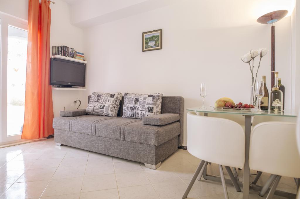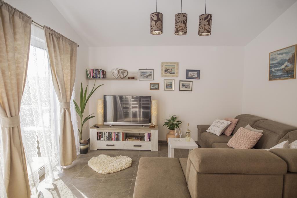 Kompletno opremljeni apartmani u mirnom dijelu Srime, 60-70 metara od pješčane plaže. U blizini se nalazi dječje igralište, šetnica, restoran, trgovina.... Apartmani su kompletno uređeni. Ispred apartmana se nalazi terasa sa besplatnim parkingom. Idealno mjesto za odmor obitelji sa djecom, Dozvoljeno je držanje kućnih ljubimaca uz prethodni dogovor Imamo mogućnost unosa dječjeg krevetića u spavaću sobu.