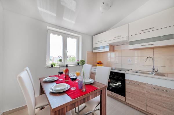 Apartman se nalazi na drugom katu s velikim balkonom i prekrasnim pogledom na more. Uređen sa stilom i veoma čist. Sve je novo i vrlo moderno uređeno. Prostrano kupatilo, što je za mene veoma bitno. Domaćin je vrlo ljubazan i jako puno zna o okolnim mjestima i izletištima. Ovo je bio jedan od najljepših naših boravaka u ovom tipu objekta, odnosno u apartmanu.