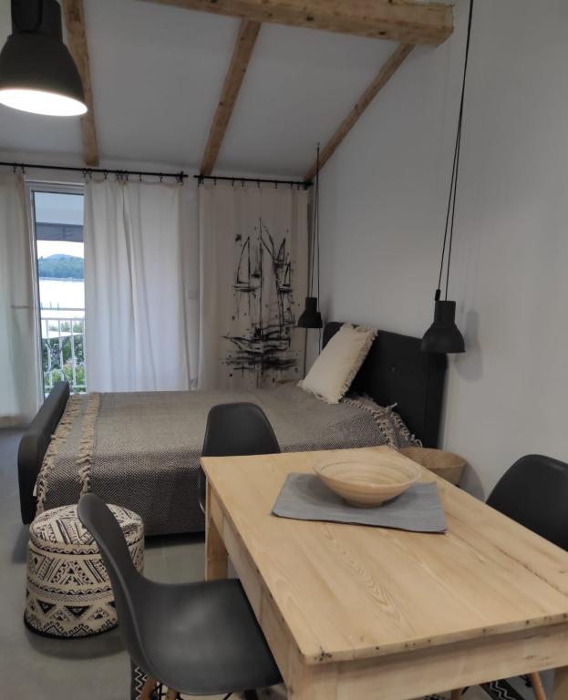 Domaćin susretljiv, komunikativan, ne nametljiv. Apartman uredan za 10/10. jedan od najurednijih apartmana. Kuhinja opremljena u potpunosti, perilica suđa, tablete..... Perilica veša i prašak , znači kao da ste doma, sve na korištenje. Tuš vani.....na plaži možete i doručkovati jer je toliko blizu. Terasa je mala, ali pogled očarava . Mirno mjesto, a opet Vodice pješke 10 minuta hoda. Puše vjetrić i nikada nije vruće. Uz plažu ima i hlad prirodni. Ocjena za sve 10/10. Hvala!