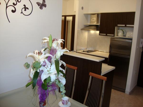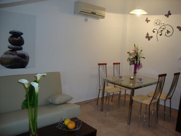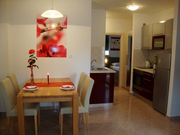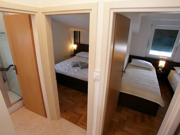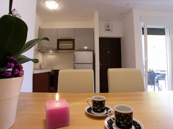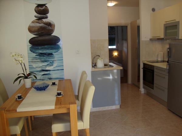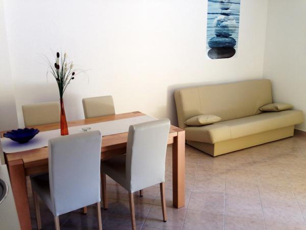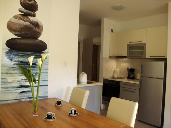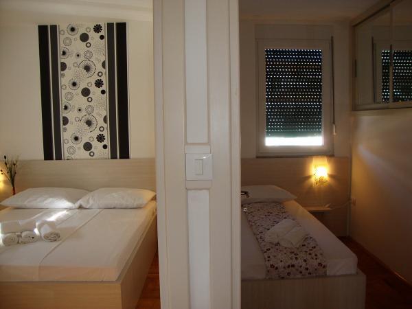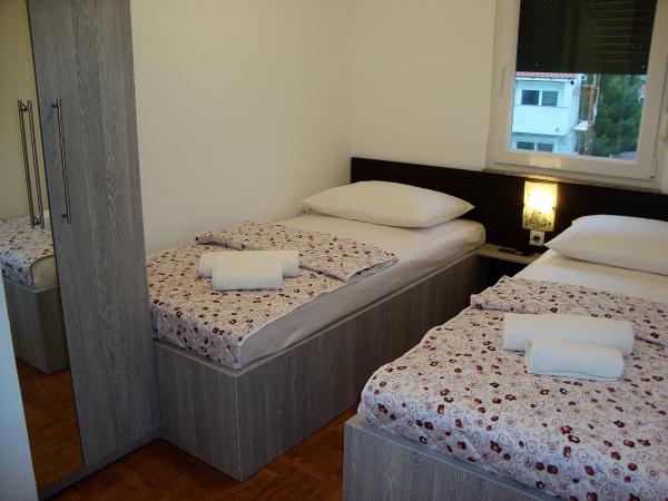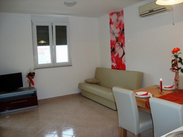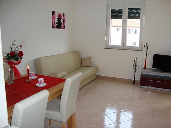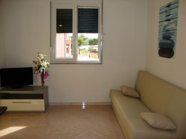 Kompletno i suvremeno opremljeni apartmani u mirnom predjelu Srime (Vodice), smješteni 100 m od mora. Opremljeni su klima uređajem, besplatnim bežičnim pristupom internetu (Wi-Fi) i TV - satelitska. Kupaonica uključuje hidromasažni tuš i sušilo za kosu. Gostima su na raspolaganju vrt i besplatna oprema za roštilj. Svi apartmani imaju terasu s pogledom na more. U sklopu objekta dostupno je besplatno privatno parkiralište. Objekt se nalazi par minuta hoda do centra.