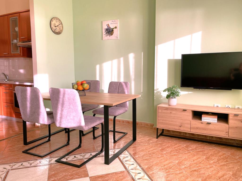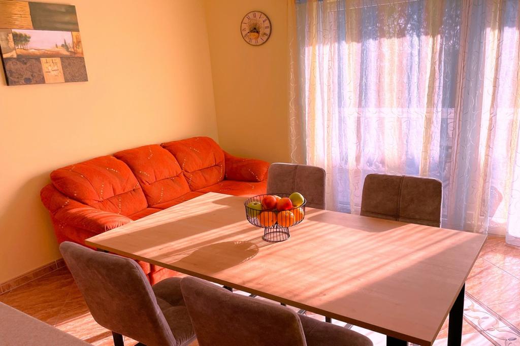 Turistička pristojba je uključena u cijenu.Lokacija stana je odlična! 60 metara do plaže. Nažalost psi nisu bili dozvoljeni na plaži, pa smo svaki dan prisiljeni ići negdje drugdje. Restorani i pekara su u blizini, hodate oko 200 m Stan je vrlo čist i stanodavac i njegova obitelj primili su nas vrlo ljubazno! Pogled s balkona je lijep. Vani se na parkiralištu nalazi i mjesto za povlačenje vode, vrlo povoljno!