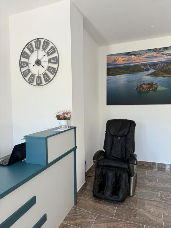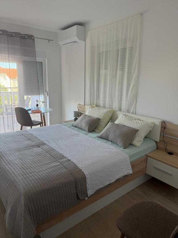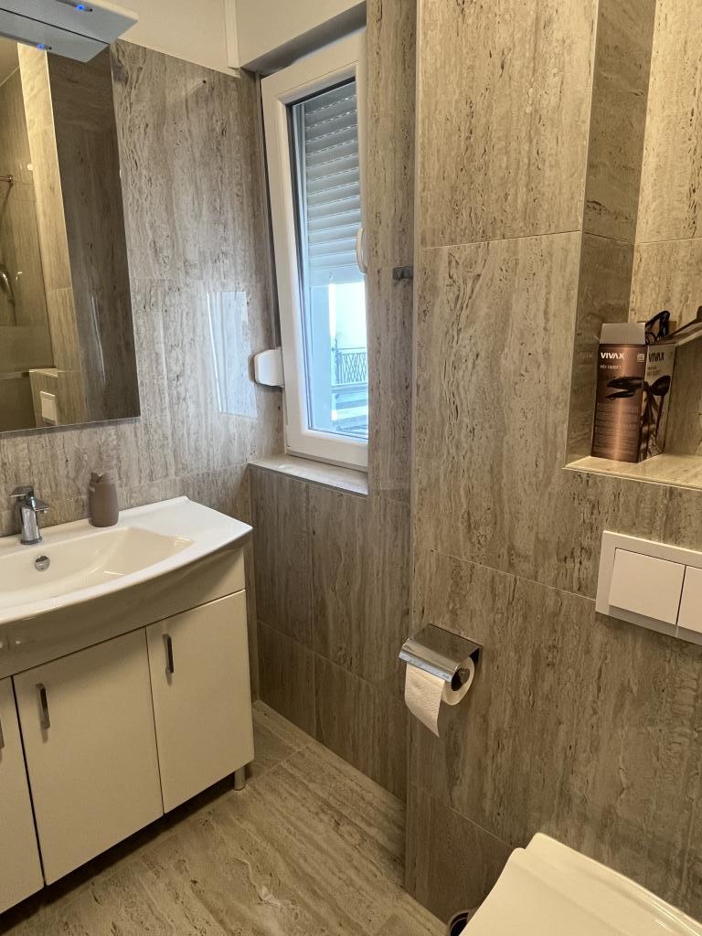 Novouređeni objekat smješten odmah uz more, mjesto Srima gdje ima pješčana i šljunčana plaža, u blizini objekta se nalaze pekara, trgovina, restoran 200m hoda, sadržaji za djecu igralište,trampolini,šetnicom 2 km do Vodica. Na raspolaganju stoje dvokrevetne sobe s pomoćnim ležajem, idealno za tročlanu obitelj, solo putnike, parove i poslovne ljude. U ponudi su 2 studio apartmana s čajnom kuhinjom i apartman u vlasništvu sestre s odvojenom spavaćom sobom. Smještajne jedinice se nalaze na 1.i 3.katu zgrade. U objektu se nalazi dizalo. Svaka soba je zasebna smještajna jedinica sa vlastitom kupaonicom i balkonom koje veže zajednički hodnik.