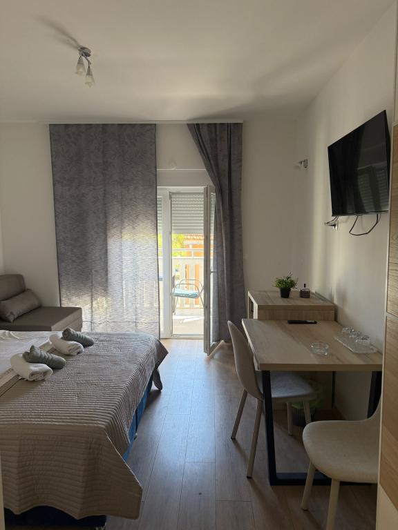 U sklopu objekta se nalazi caffe bar i mogućnost narudžbe brze prehrane (sendviča, hot dogova, pizze, palačinki...) Dostupan je i room service.Sve to u sezonsko vrijeme.Mogućnost i doručka na upit.