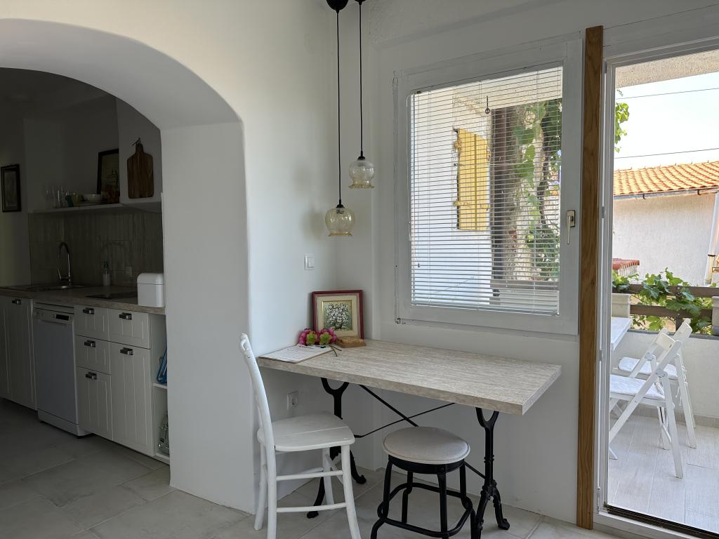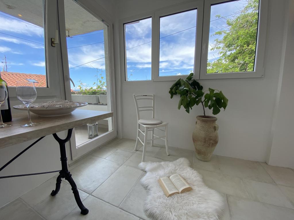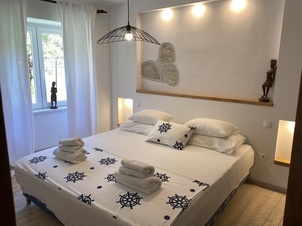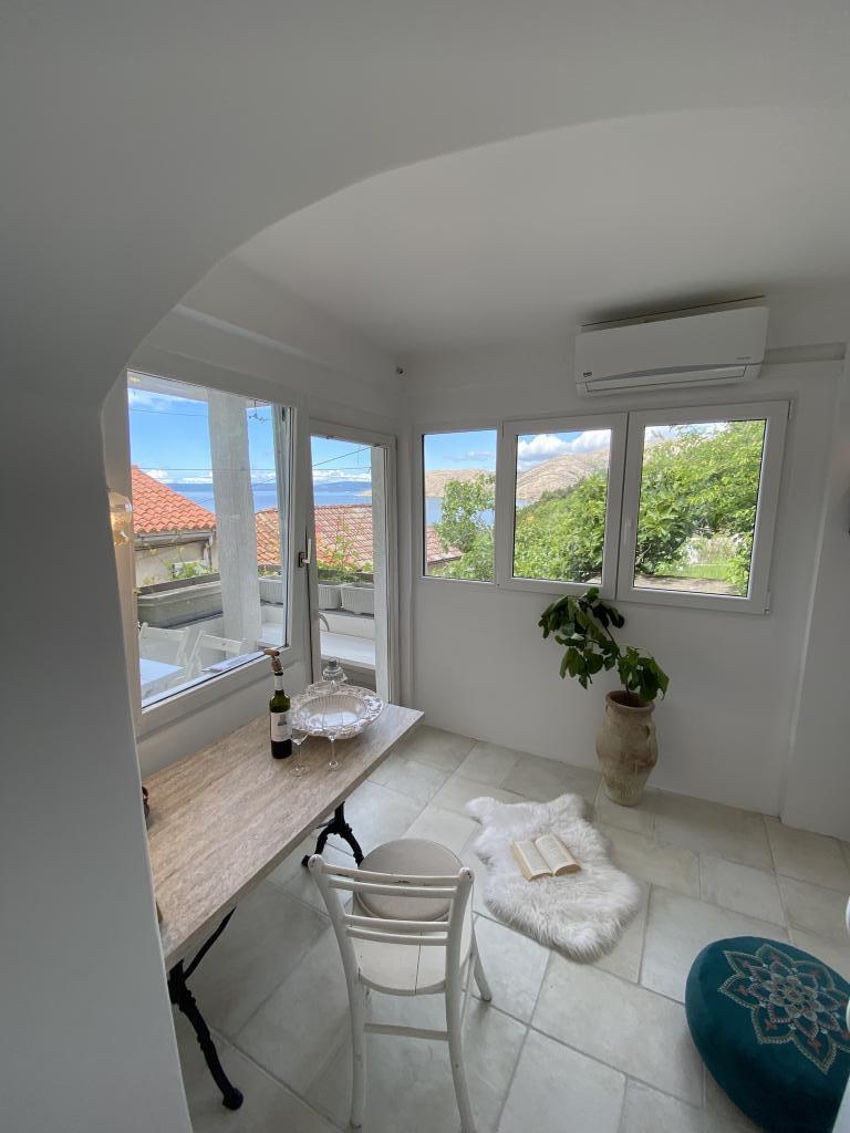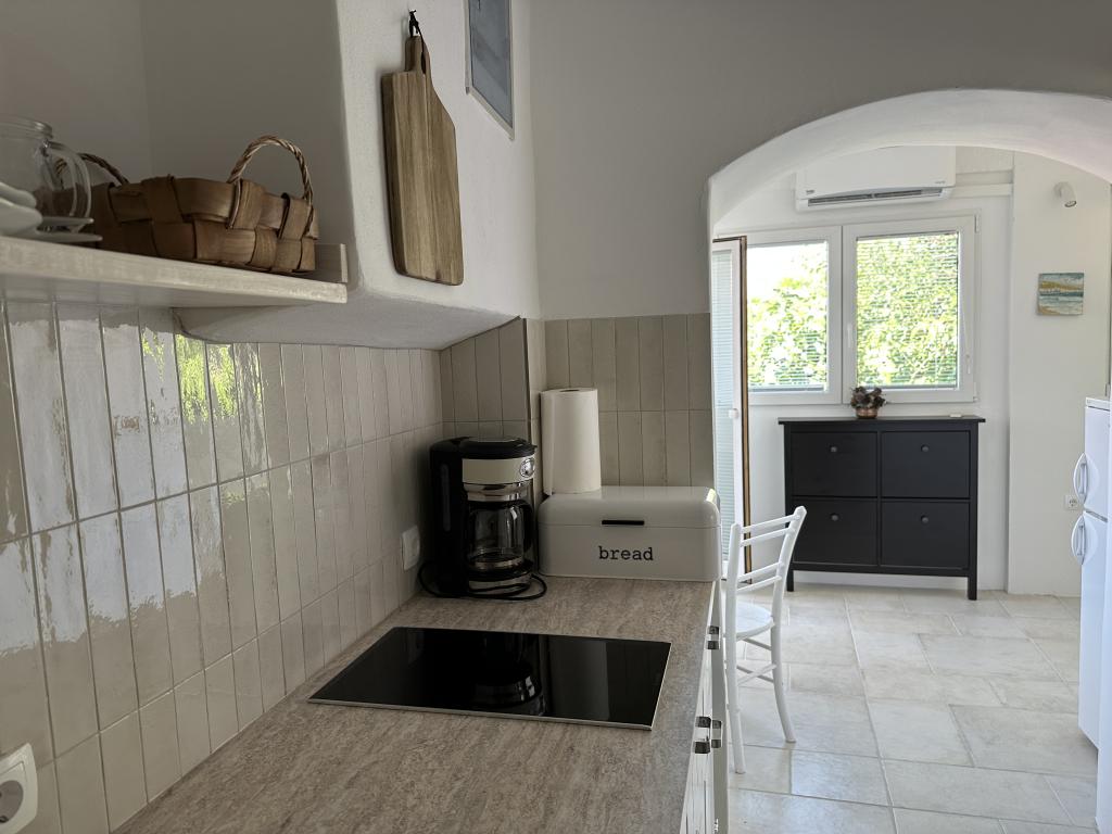 Kuča se nalazi 50 metara od pješčano - šljunčane plaže. Na plaži nema gužvi, a more je kristalno čisto. U kuči su dva apartmana. Apartman je novouređeni i kompletno opremljen. Apartman ima dvije spavaće sobe sa bračnim krevetom, potpuno opremljenu kuhinju, kupaonicu i balkon sa pogledom na more. Osigurano je jedno parkirno mjesto 100m od kuče.