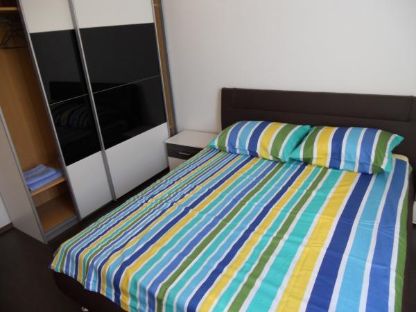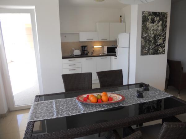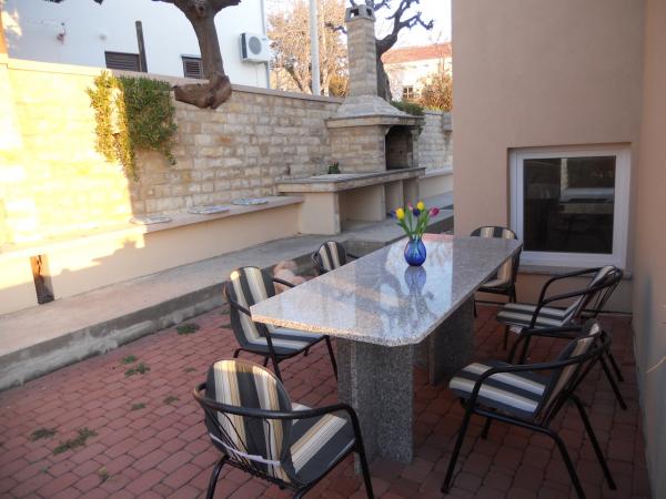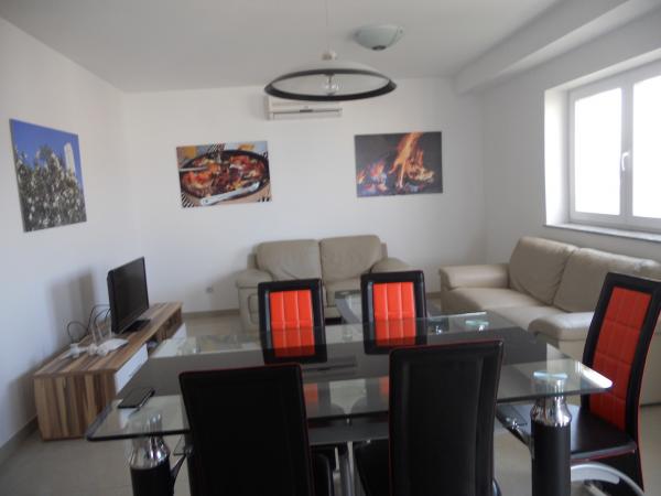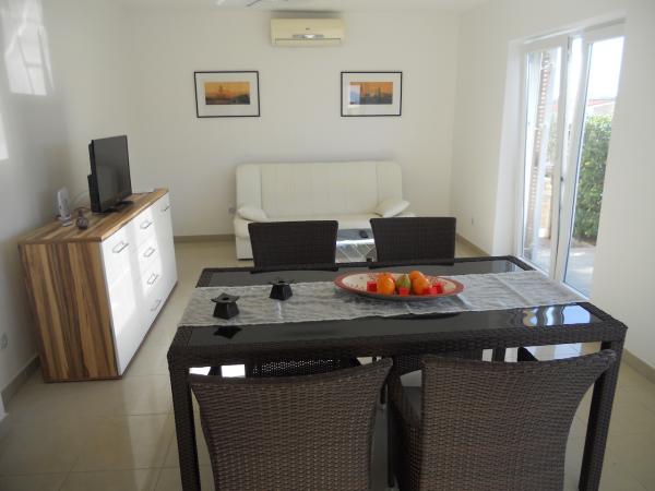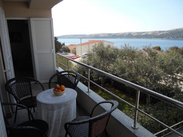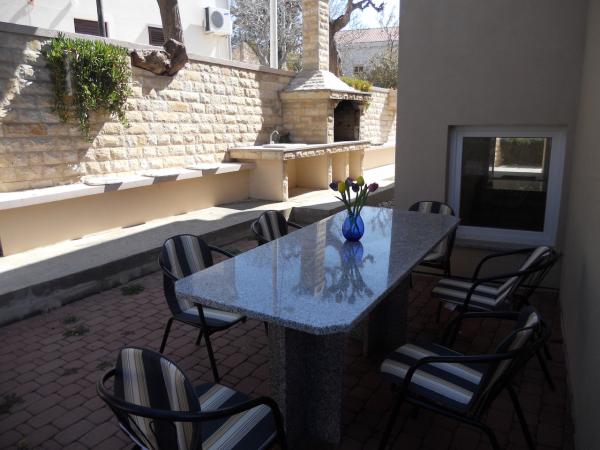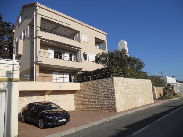 Izuetno kvalitetan smještaj, površinom vjerojatno najvećih apartmana u Staroj Novalji. Kompletno opremljeni, uključivo besplatni internet i jedno parking mjesto po svakom apartmanu. Svaki od dva apartmana jamči potpunu privatnost jer se svaki nalazi na posebnoj etaži samostojećeg objekta udaljenog svega 70-ak m od mora. U svakom apartmanu nalaze se po dvije spavaće sobe, kompletno opremljena kuhinja, a uz prostranu kupaonicu s WC-om, nalazi se i dodatni, odvojeni WC. Veliko dvorište sa stolom i 6 stolica, uključivo roštilj, na raspolaganju je gostima.