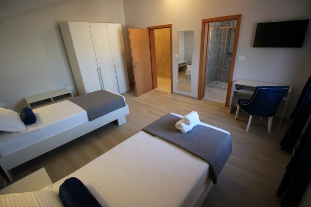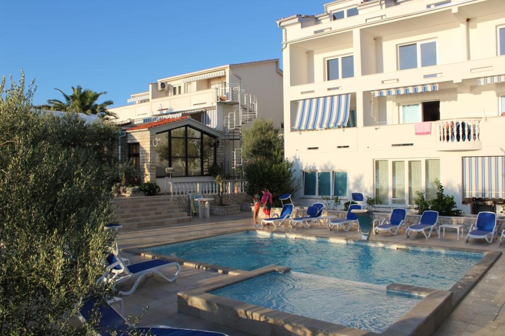 Pozdrav Dragi Gosti ! Mi smo Family resort u Staroj Novalji na otoku Pagu . Naši smještaji nalaze se direktno na moru i plaži , imamo bazen što je idealno za djecu i familije , naš parking , vez za brod , ležaljke na plaži i Bazenu . Apartmani su kompletno opremljeni s predivnim terasama pogledom na more . Svi veliki apartmani Tipa A4 +2 su sa 2 kupaonice . KATEGORIJA HOTELSKE SOBE SU NA BAZI NOĆENJE +DORUČAK za 2 OSOBE ,ŠTO JE URAČUNATO U CIJENU , AKO TKO ŽELI MOŽE I POLUPANSION ŠTO NUDIMO U NAŠEM OBITELJSKOM RESTORANU . Novo je , ove Godine opremljenn i napravljen 220m2 veliki Penthouse 6+2 +1 , Cijeli kat je vaš, 38 m 2 velika terasa sa pogledom na cijelu uvalu Stare Novalje ,otoke , Pergula na terasi i ostali sadržaji , 3 sobe , 3 kupone , još jedan extra toalet , potpuno opremljena kuhinja , veliki dnevni boravak klmatizirano , wi fi, tv sat, od mora i plaže 15 metra , Bazen , Za sve ostale informacije ,mogućnosti i rezervacije možete se obrati nama.
