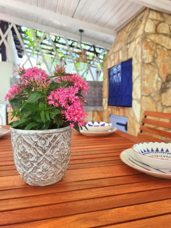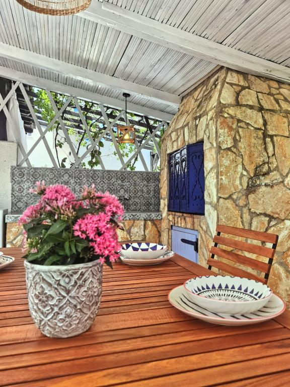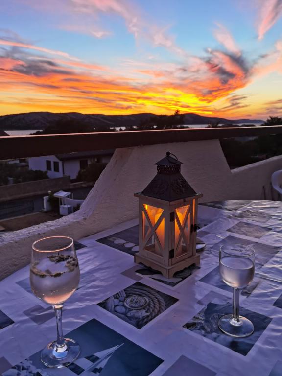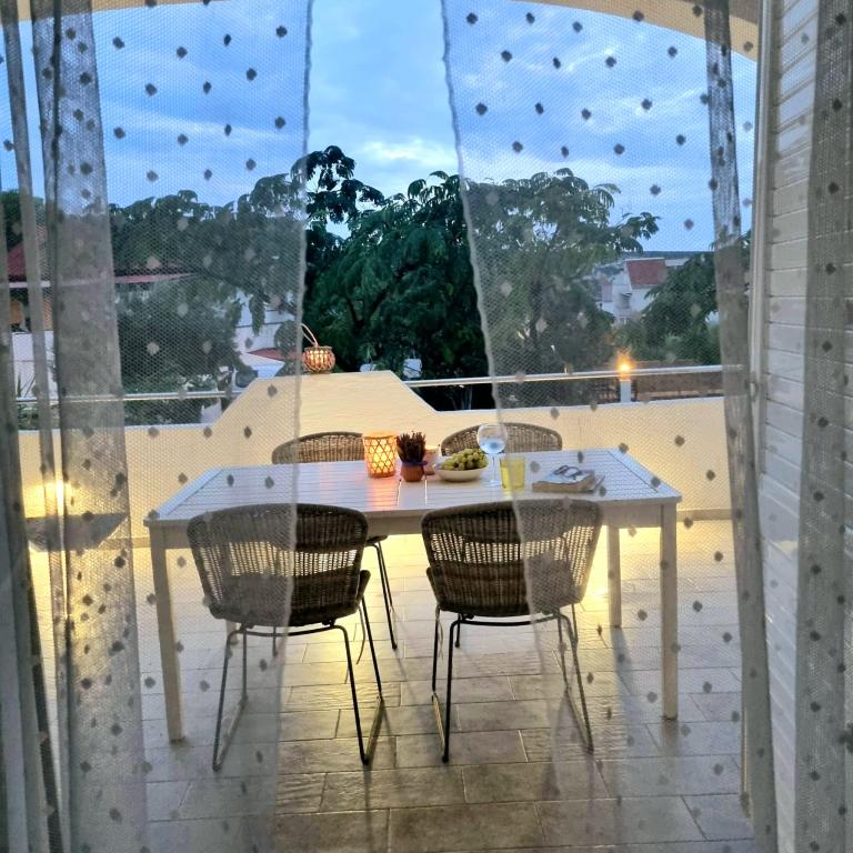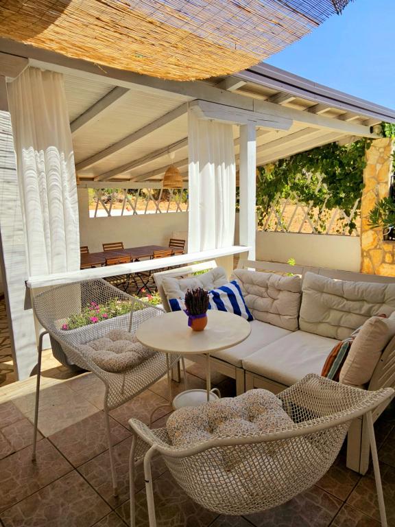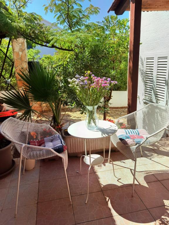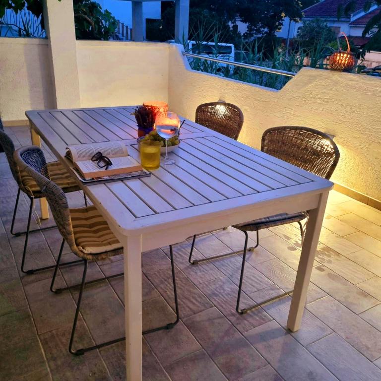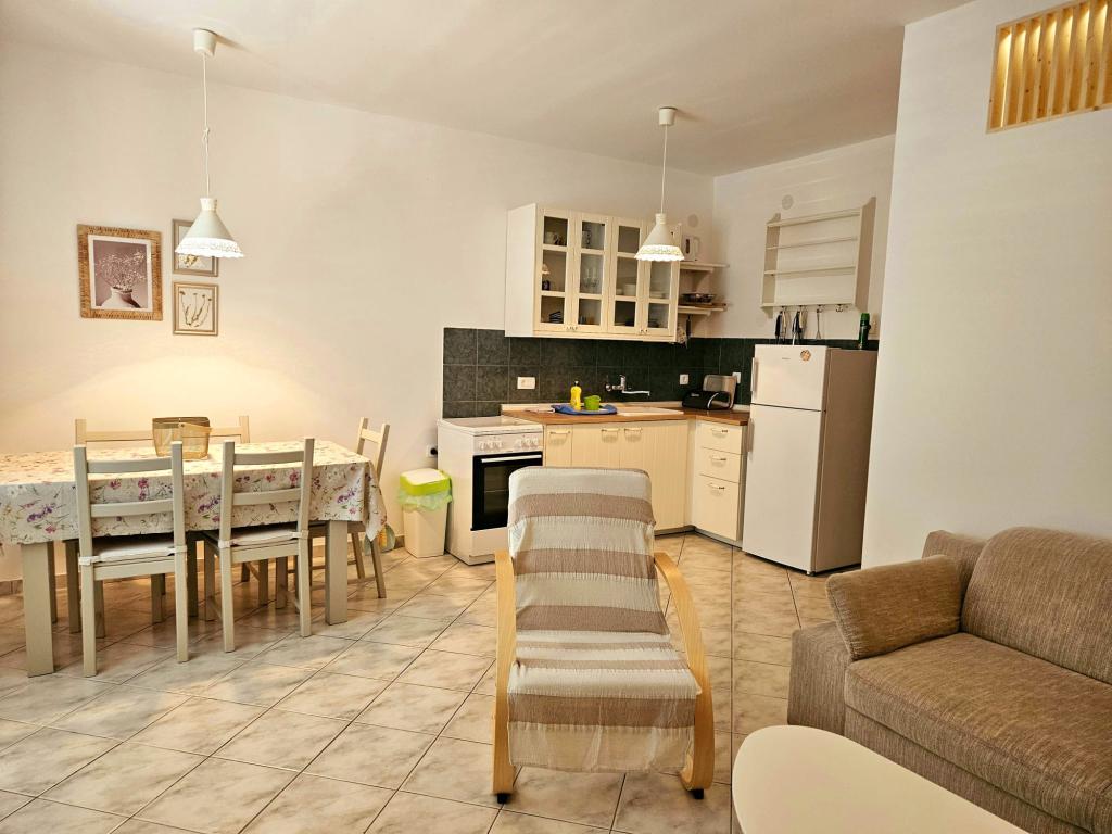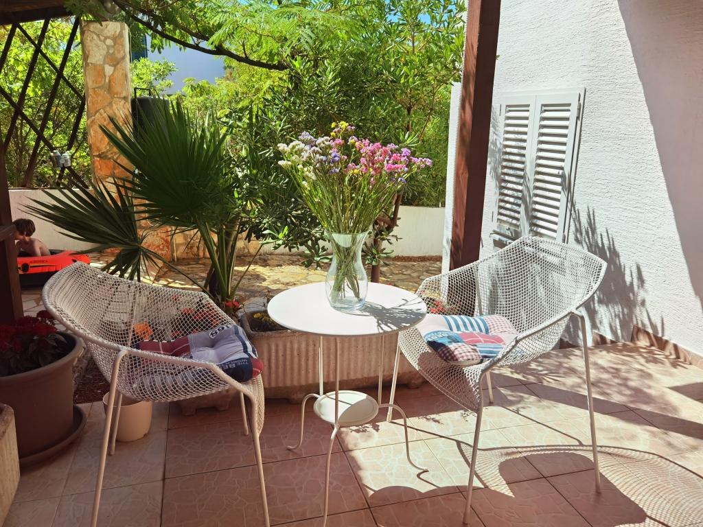 Atraktivni i funkcionalni apartmani u mirnom dijelu Stare Novalje, 5 min. hoda do plaže! Svaki apartman ima dnevni boravak, dvije spavaće sobe, kuhinju, blagovaonu, kupaonicu i veliku terasu sa pogledom na more. Na raspolaganju je i vrt s parkingom ispred objekta, te velika natkrivena terasa sa roštiljem i vanjskim tušem u stražnjem dijelu objekta.