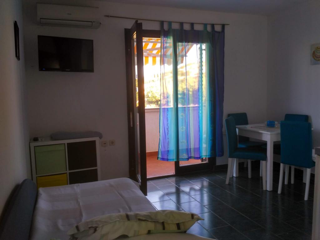 Apartman sa terasom prvi red do mora, privatni prilaz moru i privatna plaža sa tušom. Objekt se nalati 20 metara od mora sa pogledom na cijeli zaljev. Mirni dio Stare novalje daleko od gužve. Odličan restoran se nalazi 100 metara dalje.