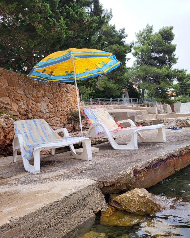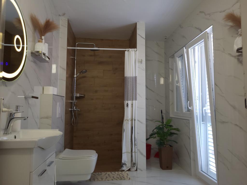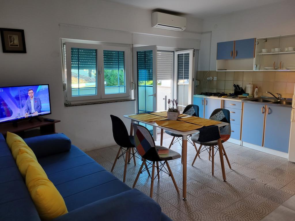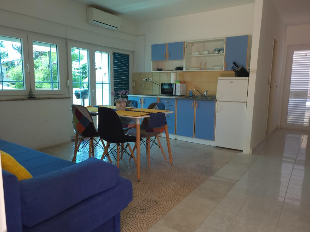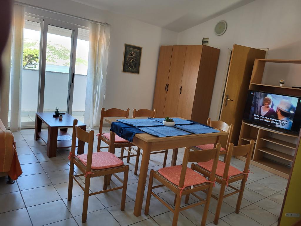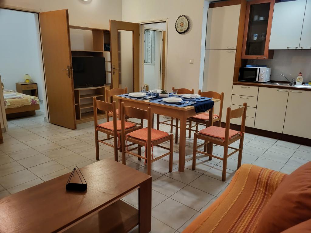 Kompletno opremljeni apartmani, internet,tv, klima, rostilj, terasa. Udaljenost do betoniranog platoa-lezaljke 30m, udaljenost do male pjescane plaze 30m, udaljenost do velike pjescane plaze 200m
