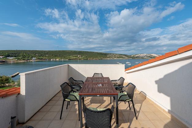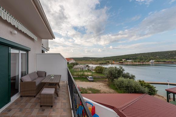 Apartmani Toni nalaze se na Staroj Novalji na otoku Pagu. Objekt se nalazi uz samu plažu te ima restoran u prizemlju. Također je u blizini, 2 minute hoda, i velika gradska plaža sa svim vodenim sportovima i barom. Ispred objekta nalazi se veliki parking i dvorište s grilom. Stara Novalja je malo, mirno mjesto no ukoliko ste željni zabave samo 5 kilometara dalje nalazi se poznata plaža Zrće s velikim noćnim klubovima, a 2. 5 kilometara grad Novalja.