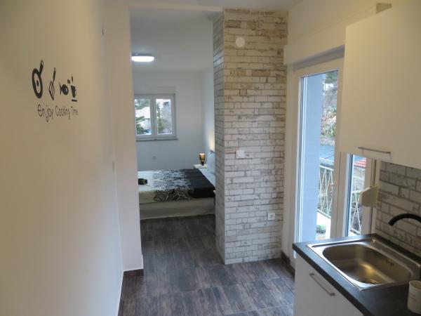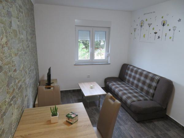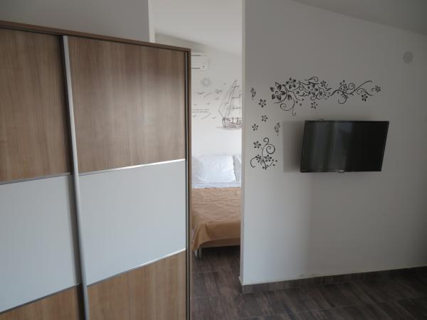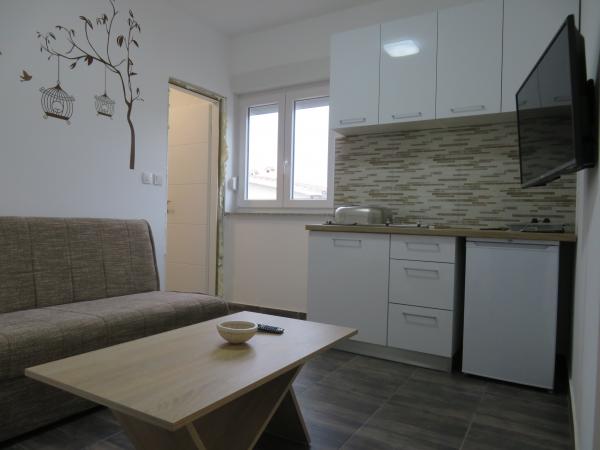 Novi apartmani, kompletno i moderno namješteni u predjelu plaža (30 metara do mora i plaže), samo 200 metara od centra. Kuća s apartmanima je cijela renovirana 2018. godine. Studio apartman je crno - bijele boje s balkonom. Apartman 2 1 je s balkonom i pogledom na more u prekrasnim bijelim i smeđim tonovima. Apartman 4 1 je najveći, ima dvije sobe s velikim krevetima. Jedna soba je bijelo - zlatne boje, a druga bijelo i bež nijansirana. Cijeli apartman uz kuhinju i blagavaonicu ima i vanjsku terasu sa vrtnim namještajem. U blizini se nalaze brojni restorani i trgovine. Starigrad Paklenica je idealan spoj mora i planinarenja zbog nacionalnog parka Paklenica koji je u samoj blizini (1700 metara). Grad Zadar je također blizu bilo za posjete, razgledavanje, letove, hvatanje lokalnog autobusnog prometa, uživanje u domaćim delicijama i slično.