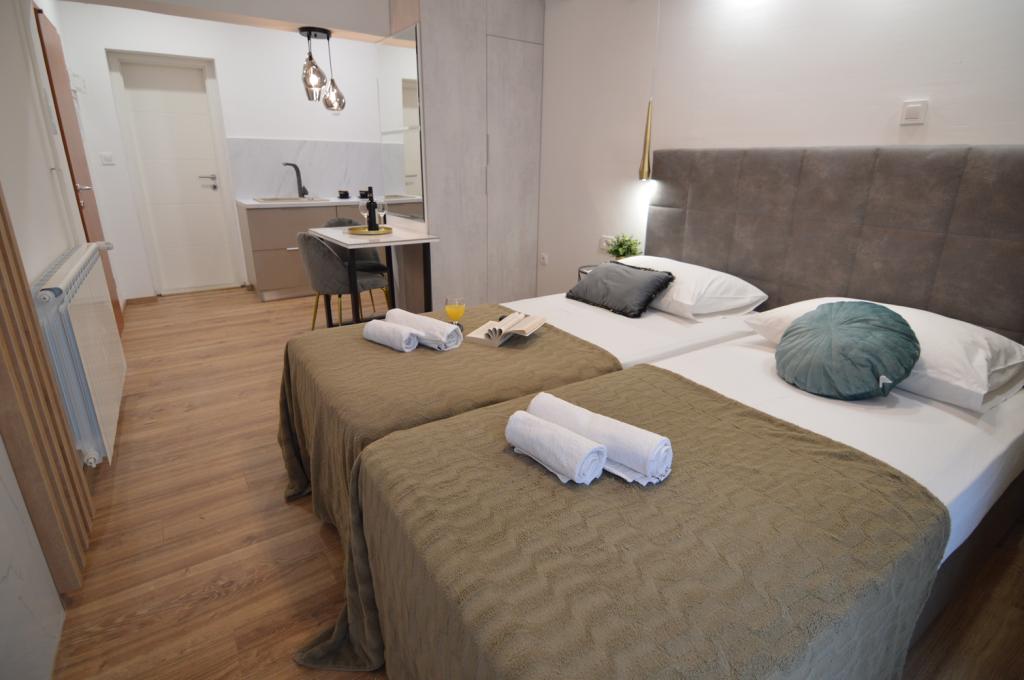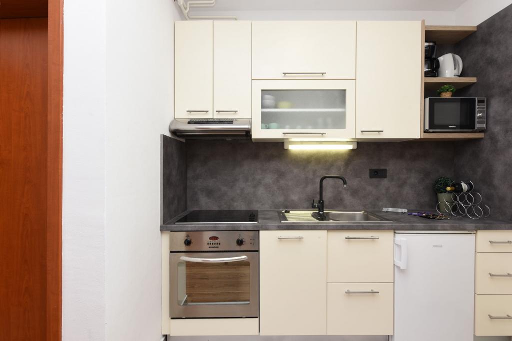 Apartmani u Starigrad Paklenici, 190m od mora, 2 km od nacionalnog parka Paklenica. Imamo više apartmana : studio apartman za 2 osobe, apartman 2 osobe a 1 spavaćom sobom, apartman za 4 osobe sa dvije spavaće sobe. Apartmani su potpuno opremljeni, klima, Wifi, kafeaparat, mikrovalna, kuhalo za vodu, TV/2Sat, sef, perlica posuđa, ručnici po osobi, fen za kosu, klima, centralno grijanje, ... Možete provesti odmor uz kupanje i sunčanje na plaži ili aktivni odmor, šetnja Velebitom, penjanje u nacionalnom parku Paklenica, vožnja biciklom, kajak, rafting na Zrmanji, vožnja brodom...