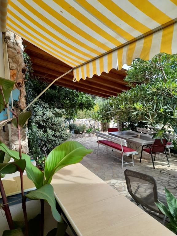 Samostoječi objekt sa 5 stambenih prostora u mirnom predjelu Starigrada. Blizina mora i plaža, restorana, igrališta, centra. Blizina Nacionalnog parka. U sklopu objekta se nalazi mala konoba i roštilj za slobodno korištenje. Svaki apartman ima svoju terasu (balkon sa pogledom na more) i dva velika stola u dvorištu.