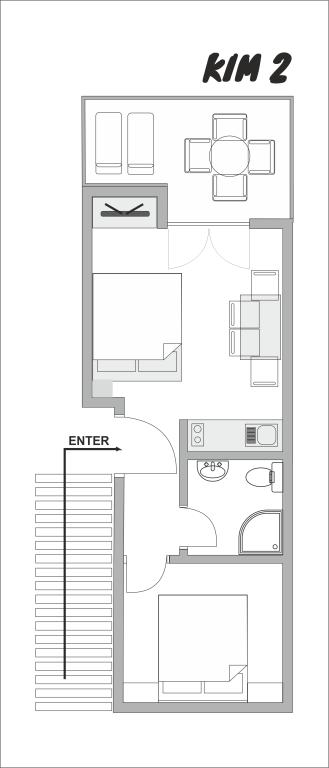 Iznajmljujemo ukupno 2 apartmana. Apartmani Kim nalaze se u Starigradu-Paklenici, udaljeni svega 130 metara do plaže. U krugu 400 metara nalaze se caffe barovi,restorani,dućani,mesnica i sve što Vam je potrebno da bezbrižno provodite svoj godišnji odmor. Također postoji direktna autobusna linija iz Zagreba (Zagreb-Starigrad Paklenica) koja vozi svaki dan od 15.06.-31.8. Apartmani se nalaze na 1 katu kuće, sa posebnim odvojenim ulazom sa stražnje strane. Apartmani Kim 1 i Kim 2 jednaki su, stambene površine – 30m2 i sastoje se od 1 spavaće sobe (u kojoj je krevet veličine 160×200 cm i ormar, kupaonice sa tuš kabinom, dnevnog boravka sa kuhinjom i sofom na razvlačenje (160×200 cm)i balkonom od 10m2. Apartmani su potpuno opremljeni i sadrže ručnike, posteljinu, posuđe. Opremljenost apartmana: • WiFi • ROŠTILJ u vrtu • MIKROVALNA PEĆNICA • KLIMA • PARKING • FEN • TOSTER, KUHALO, APARAT ZA KAVU • SMART TV