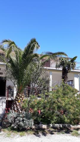 Kuća sa 4 apartmana sa velikom okućnicom, okruženom raznolikim biljem. Višegodišnje palme koje prolaznici fotografiraju i zapažaju u skoro svakom trenutku ukrašavaju naš ambijent. Veseli vlasnici i ugodni ljudi žive u objektu i paze na sigurnost gostiju i njihovih stvari dok se gosti kupaju u bistrom moru sa šljunčanim plažama udaljeni 100m od objekta. Plaže imaju i dodatni sadržaj sa novoizgrađenim sportskim terenima i igralištem za djecu raznog uzrasta. Centar mjesta je udaljen svega 20 minuta hoda ili par minuta sa autom. Svake godine u centru se događaju razne manifestacije. Također u ponudi imamo kamp a za više informacija nazovite na 38523369369