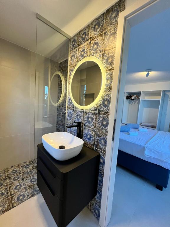 Iznajmljuju se 2 luksuzna apartmana (1 za 4 osobe i jedan za 5 osobe) i 1 studio-apartman za 2 osobe prvi red do mora, 4 km od Starigrad-Paklenica. Uživajte u nezaboravnom odmoru u našim ekskluzivnim apartmanima smješteni uz samu obalu, s direktnim pristupom kristalno čistom moru. Ovaj smještaj nudi sve što vam je potrebno za savršen odmor: Prostrana spavaća soba: Elegantno uređena, s udobnim krevetom i modernim detaljima, uz privatnu kupaonicu opremljenu vrhunskim sadržajima. Kompletno opremljena kuhinja**: Moderna kuhinja s najnovijim aparatima, idealna za pripremu ukusnih obroka. Privatna terasa za svaki apartman: Oaza mira s prekrasnim pogledom na more, savršena za opuštanje uz jutarnju kavu ili večernji zalazak sunca. Vanjski tuš: Uživajte u osvježavajućem tuširanju pod zvijezdama, okruženi prirodom. Okruženje prirode: Apartman je smješten prvi red do mora sa direktno pristupnom plažu u idiličnom okruženju, okružen bujnim mediteranskim zelenilom i mirisima mora.