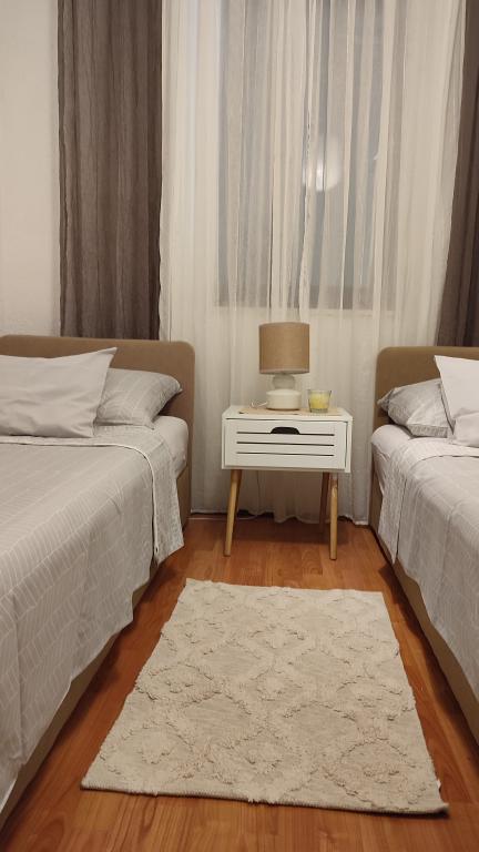 Pročitaj više Smještajne jediniceAkontacija za rezervaciju iznosi 20 % od ukupne cijene aranžmana, uplata na IBAN transakcijski račun vlasnika objekta Ostatak plaćanje gotovinom na dan dolaska , ili na račun prije dolaska u apartman U cijenu apartmana uključena su sva davanja. Vrijeme ulaza u apartman je od 14: 00 sati, a vrijeme izlaza iz apartmana do 10:00 sati ujutro Cijena po osobi više ( 4+) nadoplaćuje se 10 eura. Ne primamo kućne ljubimce.