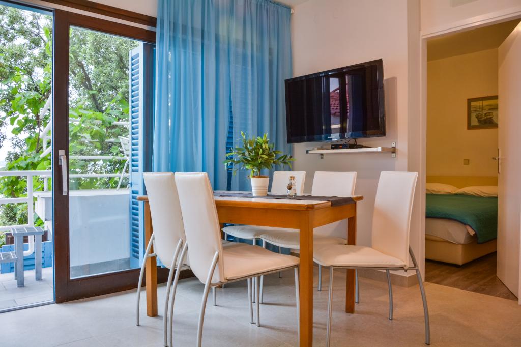 Turistička pristojba je uključena u cijenu.Kako bi još više proširili našu ponudu i omogućili vam još ugodniji boravak kod nas, od 2016. godine u sklopu apartmana moguće je uživati u prekrasnom Biodesign bazenu smještenom svega nekoliko metara od vašeg apartmana U sklopu naših apartmana gosti mogu uživati u domaće pripremljenim jelima, spravljenim po izvornim hrvatskim receptima. Sva jela spremljena su od 100% svježih sastojaka i rade se isključivo uz prethodnu najavu od gosta. Dostupna je svježa riba iz Jadranskog mora, u većini slučajeva isti dan ulovljena. Moguće je dogovoriti doručak i/ili večeru ovisno o vašim zahtjevima. Večera se sastoji uglavnom od tri slijeda (predjelo, glavno jelo i desert), te se uvijek spravljaju raznovrsna jela. .
